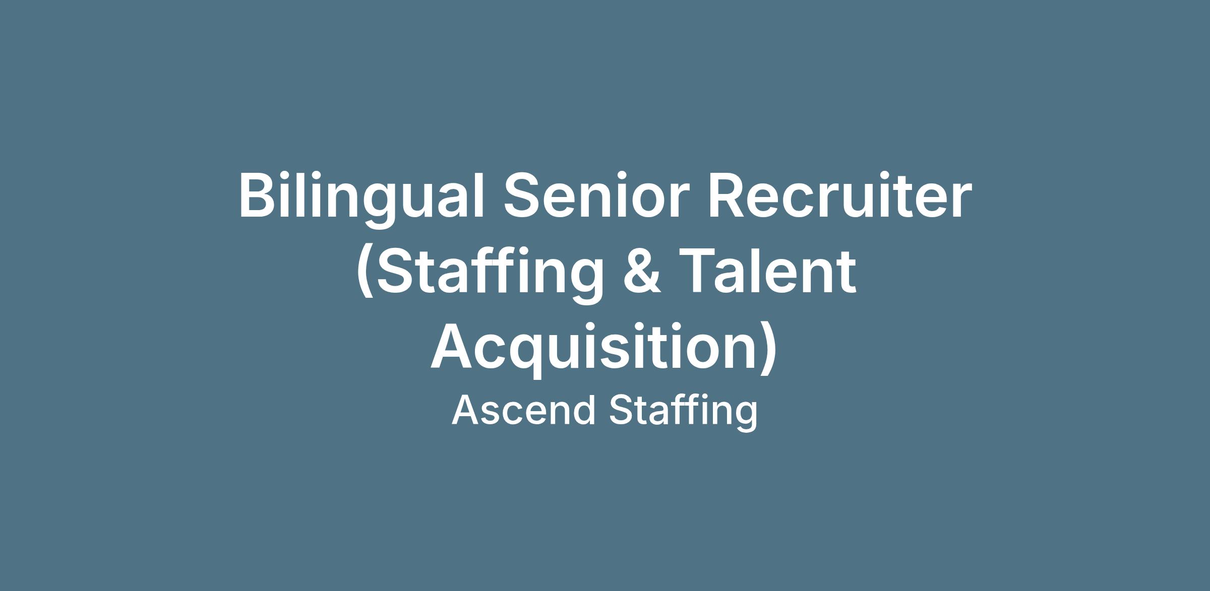 - Recruiting experience (staffing/agency experience strongly preferred)