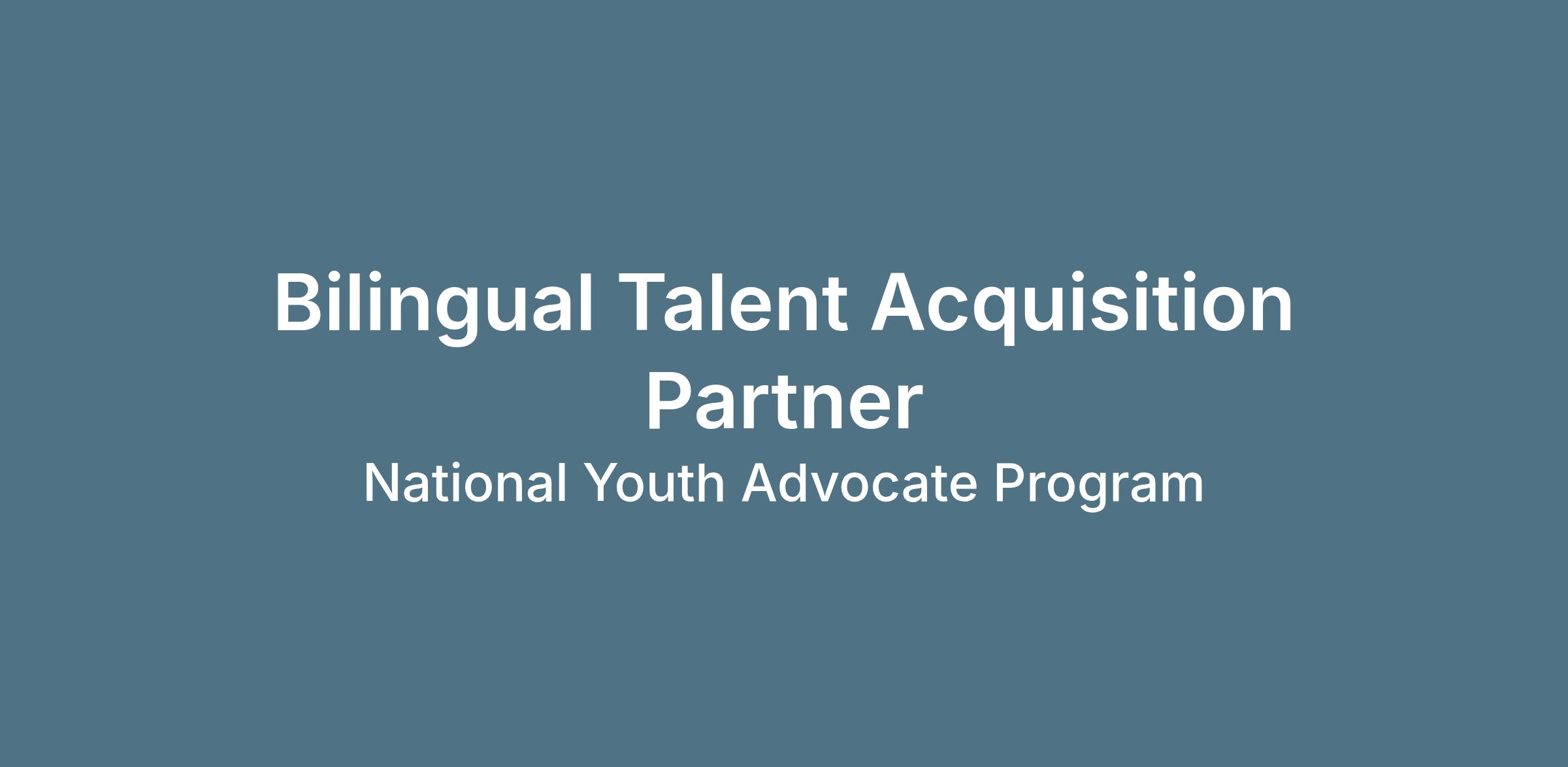 The National Youth Advocate’s La Jornada program is looking for a Talent Acquisition Partner to join our growing talent acquisition team. This is a remote opportunity for a Talent Acquisition Partner who speaks both English and Spanish fluently. The Talent Acquisition Partner is responsible for assisting with the successful execution of end-to-end recruiting activities for our program of 500 employees and growing. This position can be located in-office in Columbus Ohio or be fully remote for the right dedicated individual located in the United States.Â