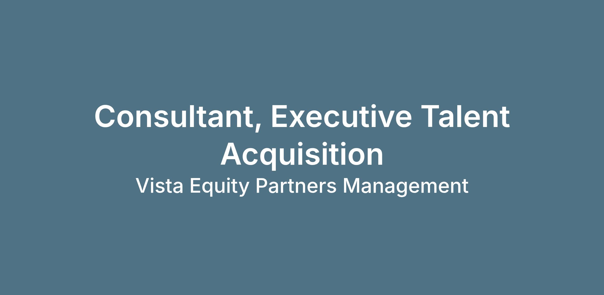 As a Talent Acquisition Consultant, you will partner with Vista’s internal stakeholders and portfolio company leaders to deliver high impact executive level hiring solutions. You’ll manage the full lifecycle of talent acquisition for key leadership roles focused on the Technology and Product function, while driving strategic initiatives that enhance scalability, quality of hire, and time to fill across a dynamic portfolio environment. You will build a curated “bench” of technology leaders as well as partner with top executive search firms. This role has a deep focus on AI, both hiring AI talent and operationalizing AI internally.