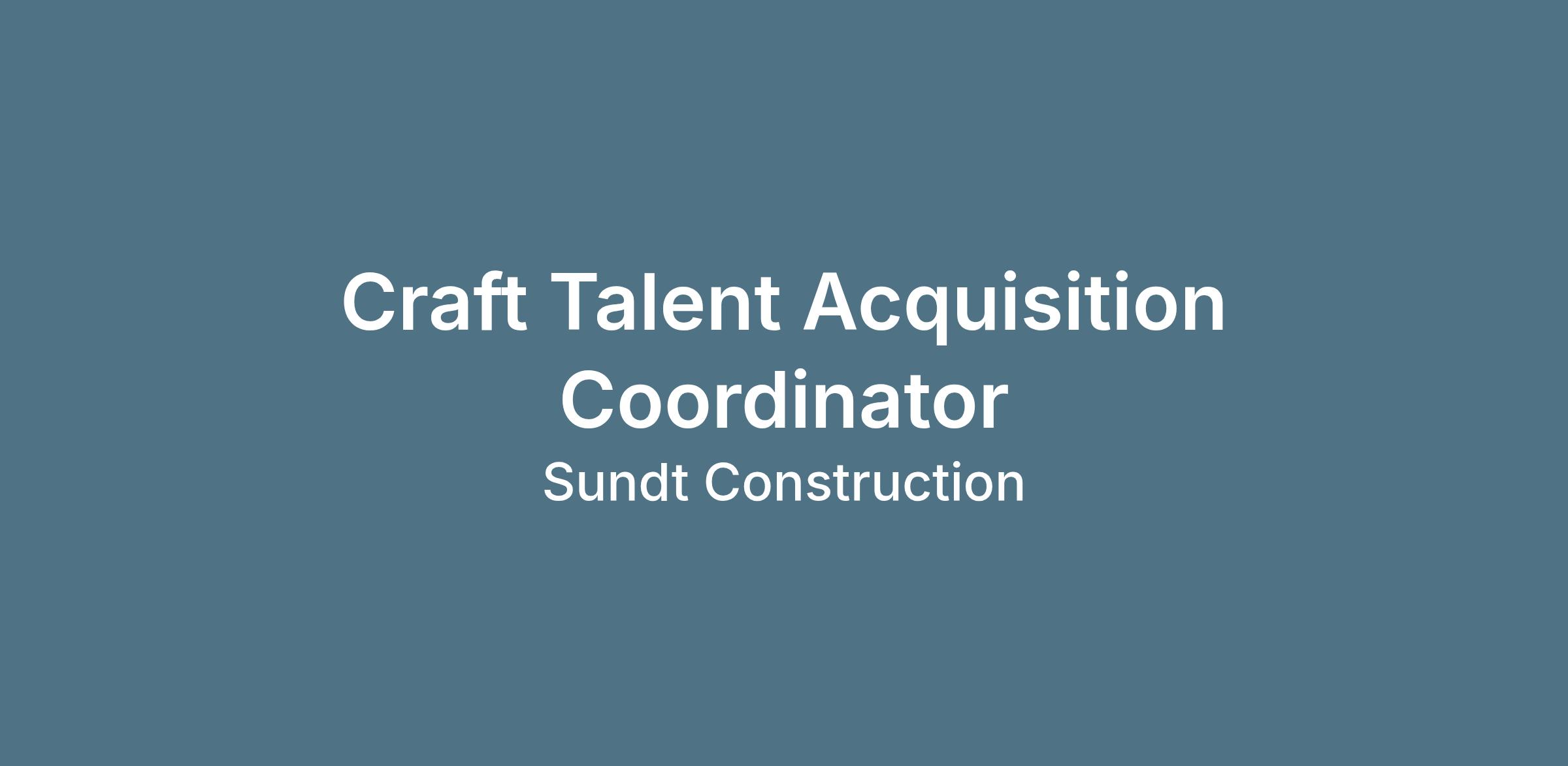 The Craft Talent Acquisition Coordinator will provide administrative support for the hiring of our craft workforce. You will closely interact with recruiters, candidates, hiring managers and other human resources professionals to provide support for the craft recruitment needs of the business.