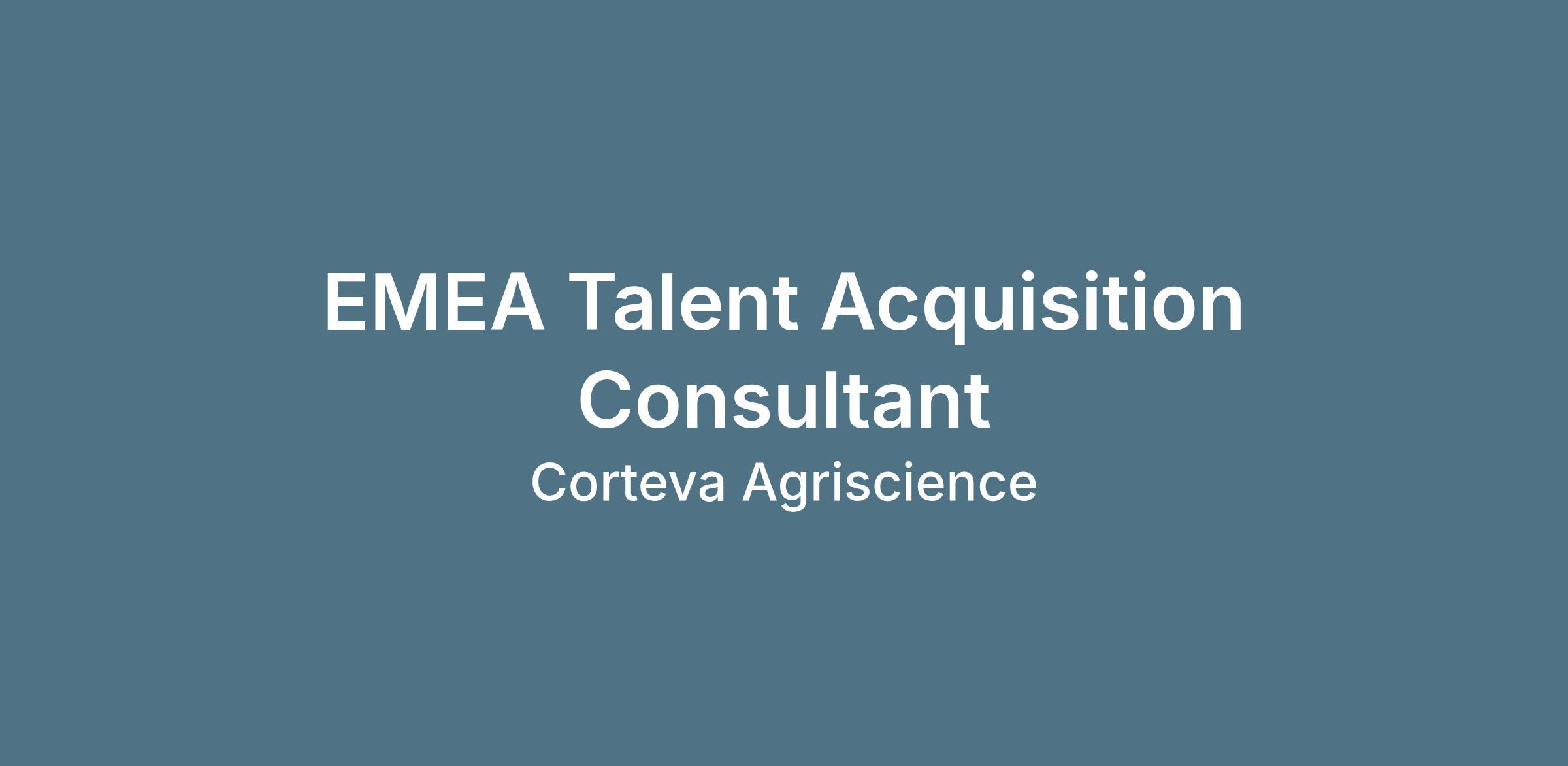 The Talent Acquisition CoE supports Corteva's growth & overall strategy by finding and attracting the best talent. We are currently looking for a new role in our team, a Talent Acquisition Consultant (International Recruiter) Β based in Europe. The role resides in our Talent function, where you will collaborate with colleagues across the globe within Talent Acquisition, Talent Management and our People Team across the region.