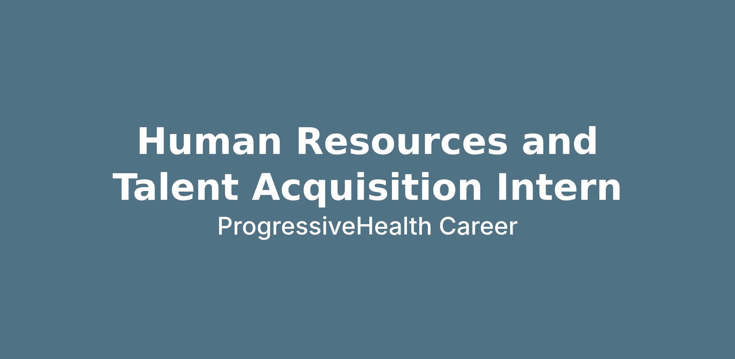 We are looking for a Human Resources (HR) & Talent Acquisition (TA) Intern to join our ProgressiveHealth team! The intern will be responsible for providing support and assistance to the Talent Acquisition and HR Team through activities related to recruitment, onboarding, and compliance processes and procedures. Our Intern will partner with corporate and remote managers to support them through the recruitment and offer extension process.