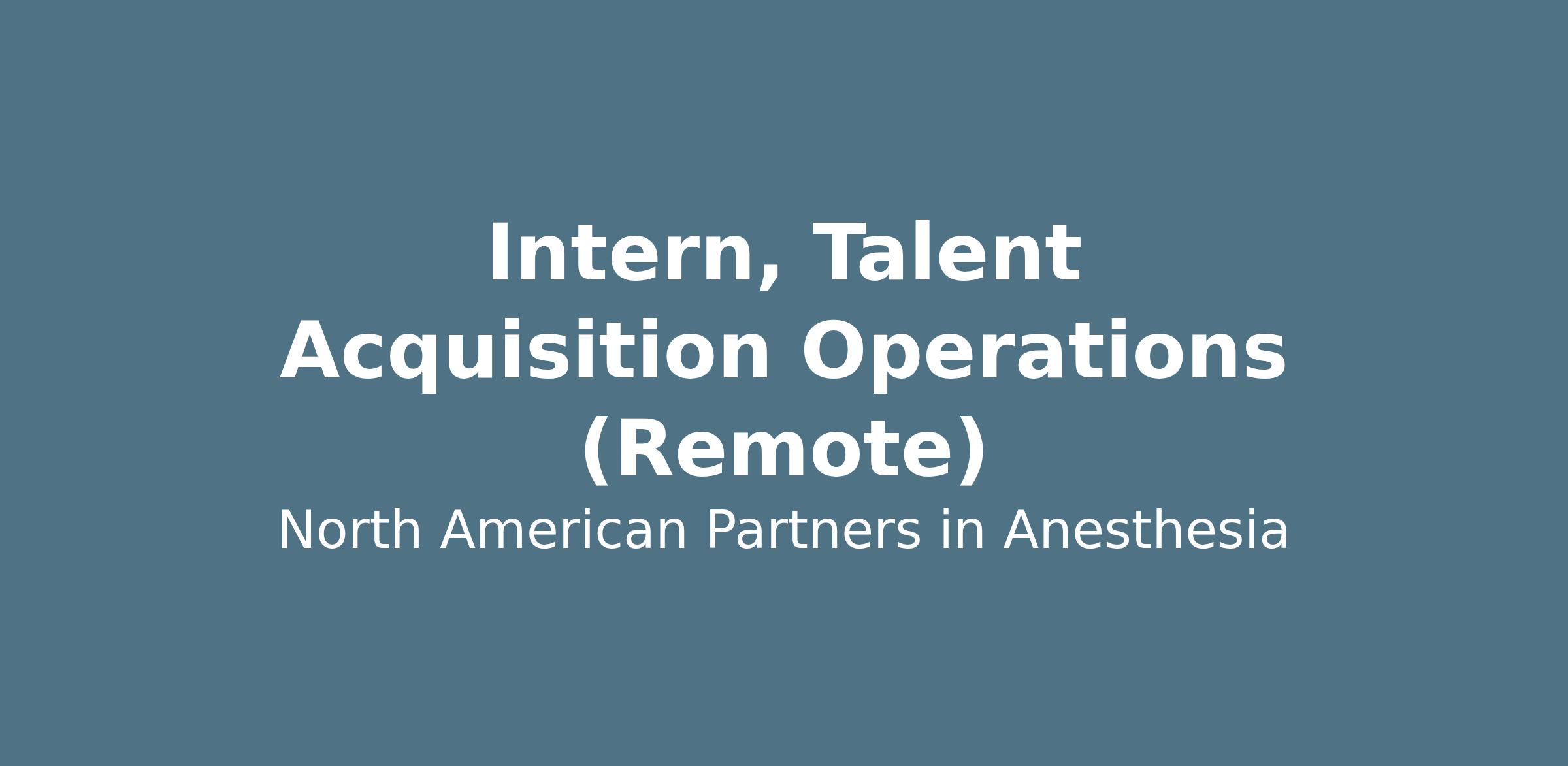 - Exposure to healthcare talent acquisition operations at a national anesthesia services organization
