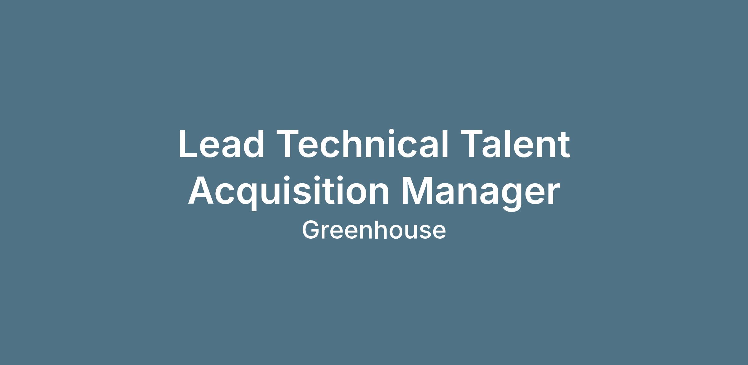 Greenhouse is looking for a Lead Technical Talent Acquisition Manager to manage full-cycle hiring for high-impact technical roles. You will operate in a unique environment: we are power users of the technology we build. As a senior, hands-on individual contributor, you will beta-test new product features, partner with Product and Engineering to provide feedback, and help our Talent Acquisition team become AI-first while sharing best technical recruiting practices with other team members.