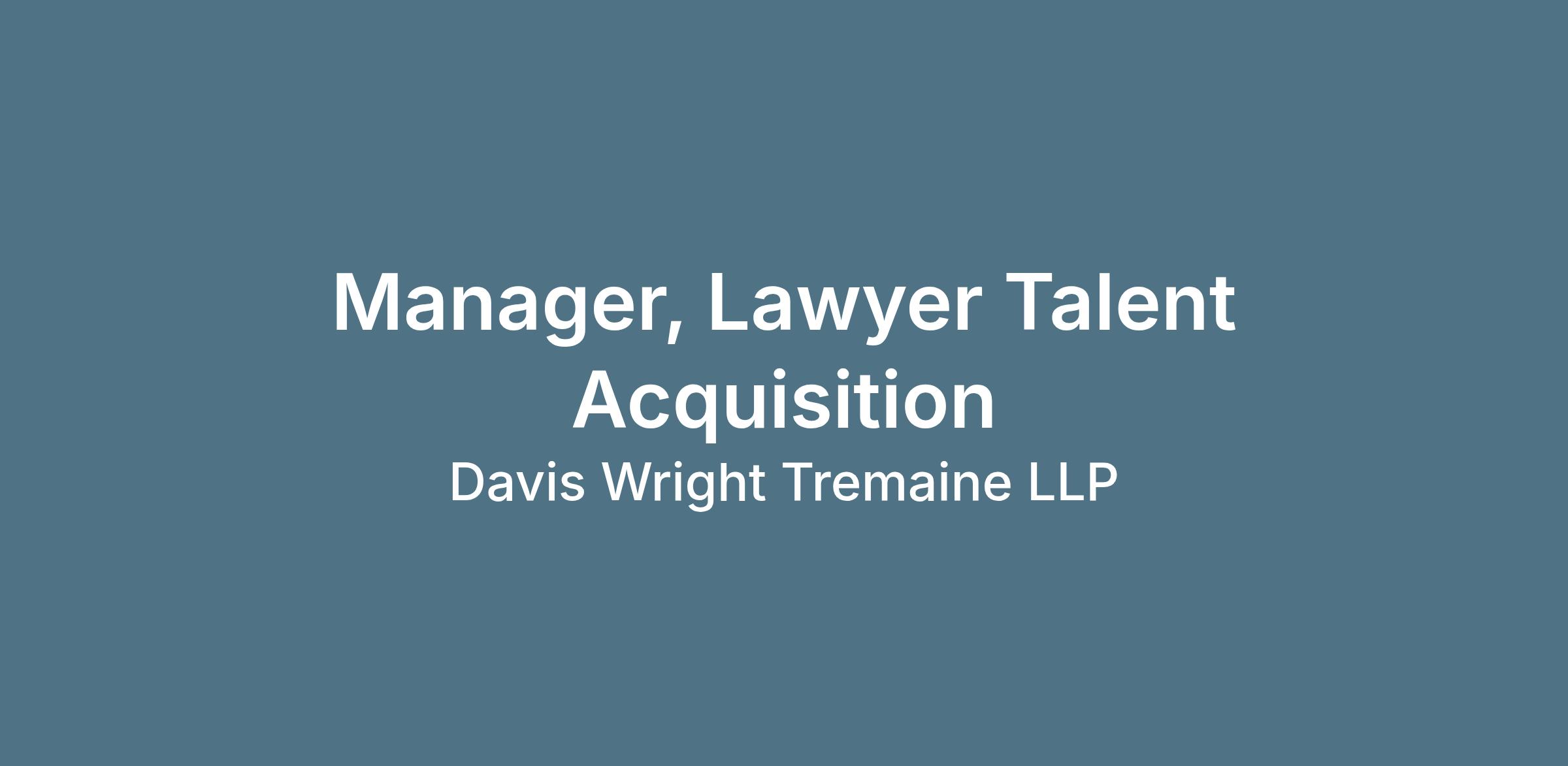 This is an exciting opportunity to work for one of the top law firms in the U.S.! Davis Wright Tremaine LLP is looking for a Manager, Lawyer Talent Acquisition to join our team in our New York or Washington D.C. offices.