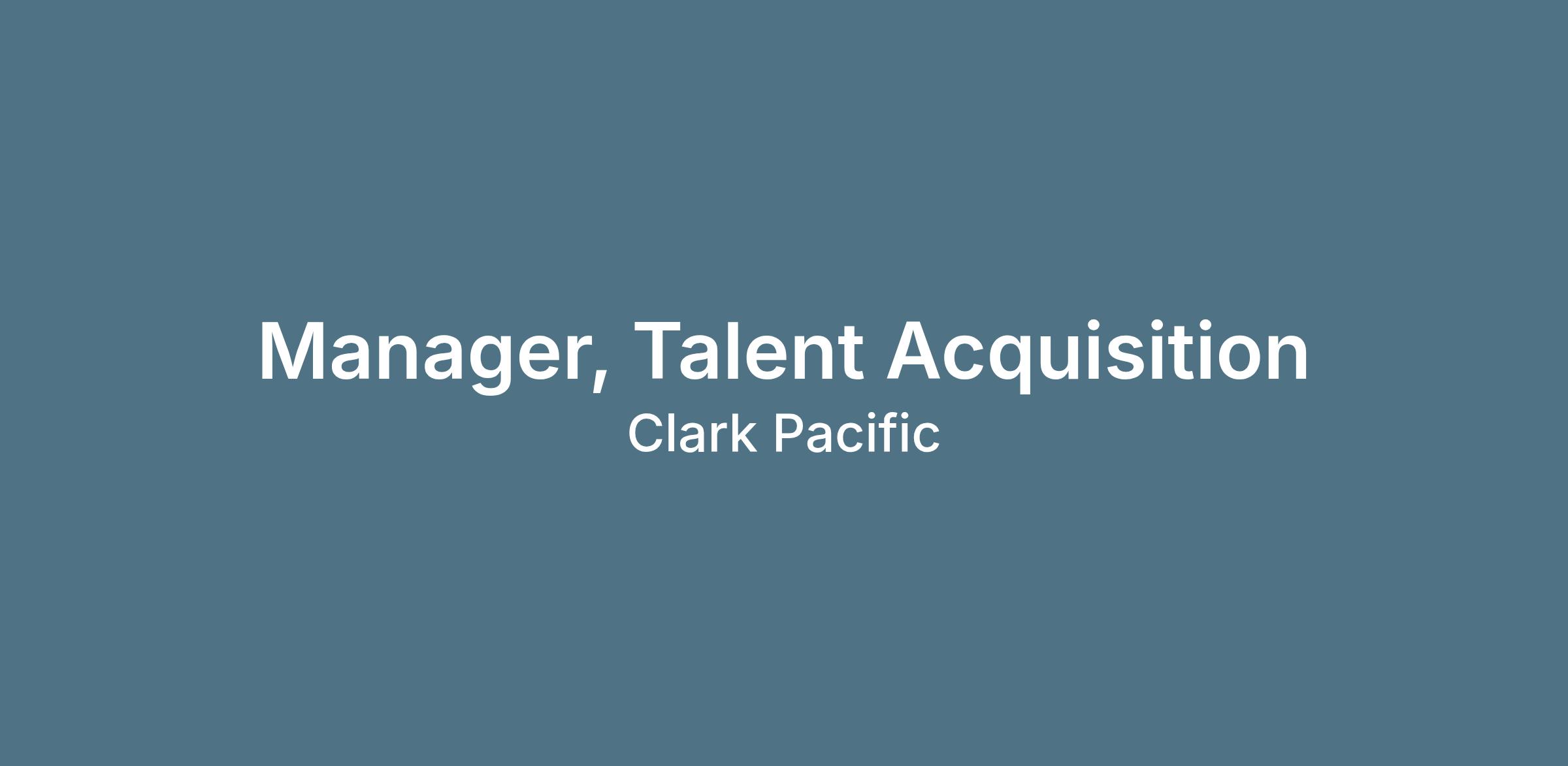 The Manager, Talent Acquisition leads a team of recruiters to plan, forecast, and execute Clark Pacific’s strategy to attract and hire top talent. This role partners closely with senior leaders and hiring managers to build a proactive, data-driven talent acquisition strategy that delivers on current and future workforce needs.