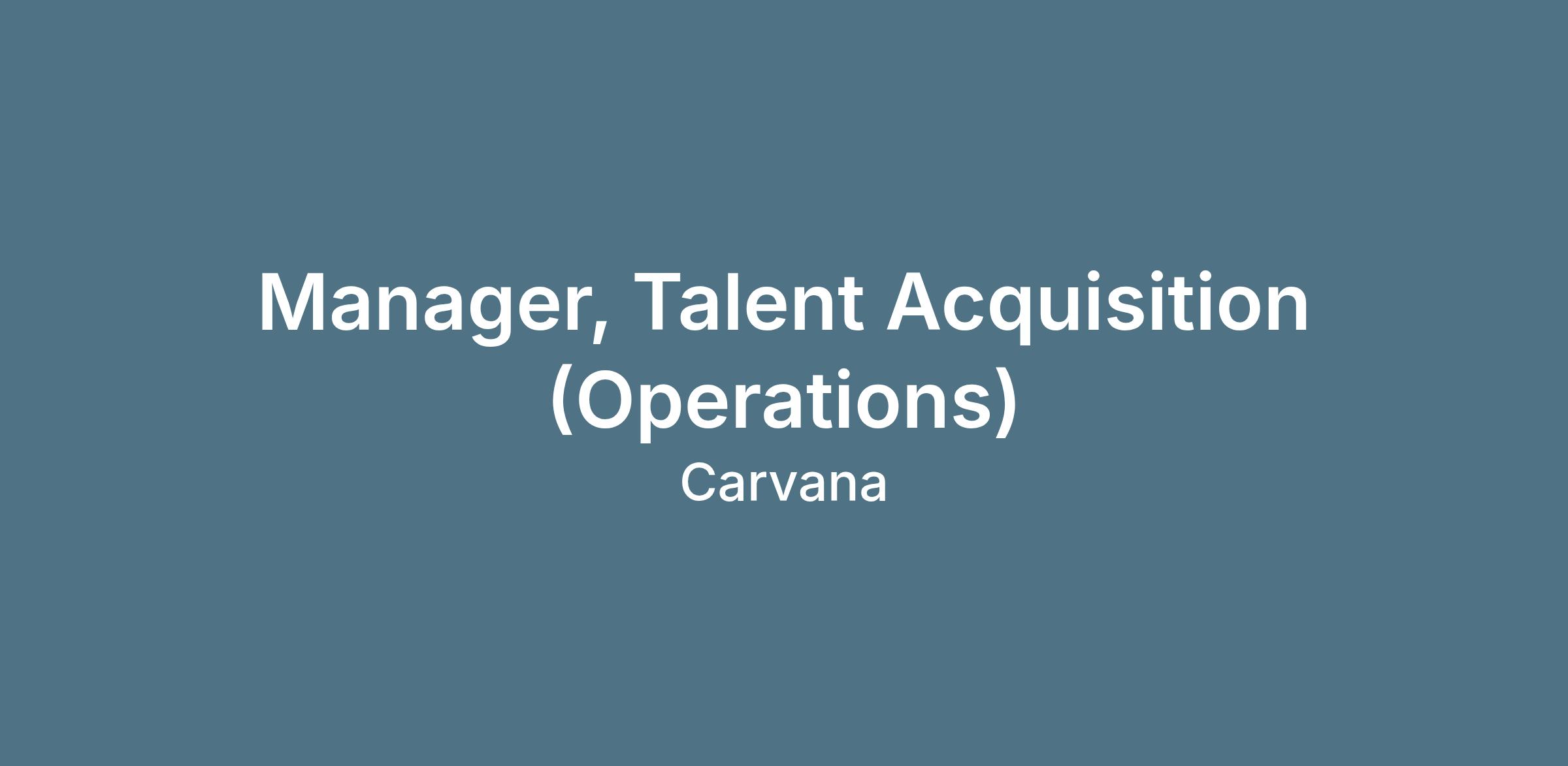 We’re looking for an experienced and proven Manager to join our unique and exciting organization, supporting Talent Acquisition efforts within our Operations Talent team. The Manager, Talent Acquisition will have the unique opportunity to build, develop, and lead the execution of full life-cycle recruiting for Carvana’s Operations teams, while guiding a recruiting team to meet (or crush) high-volume hiring targets.