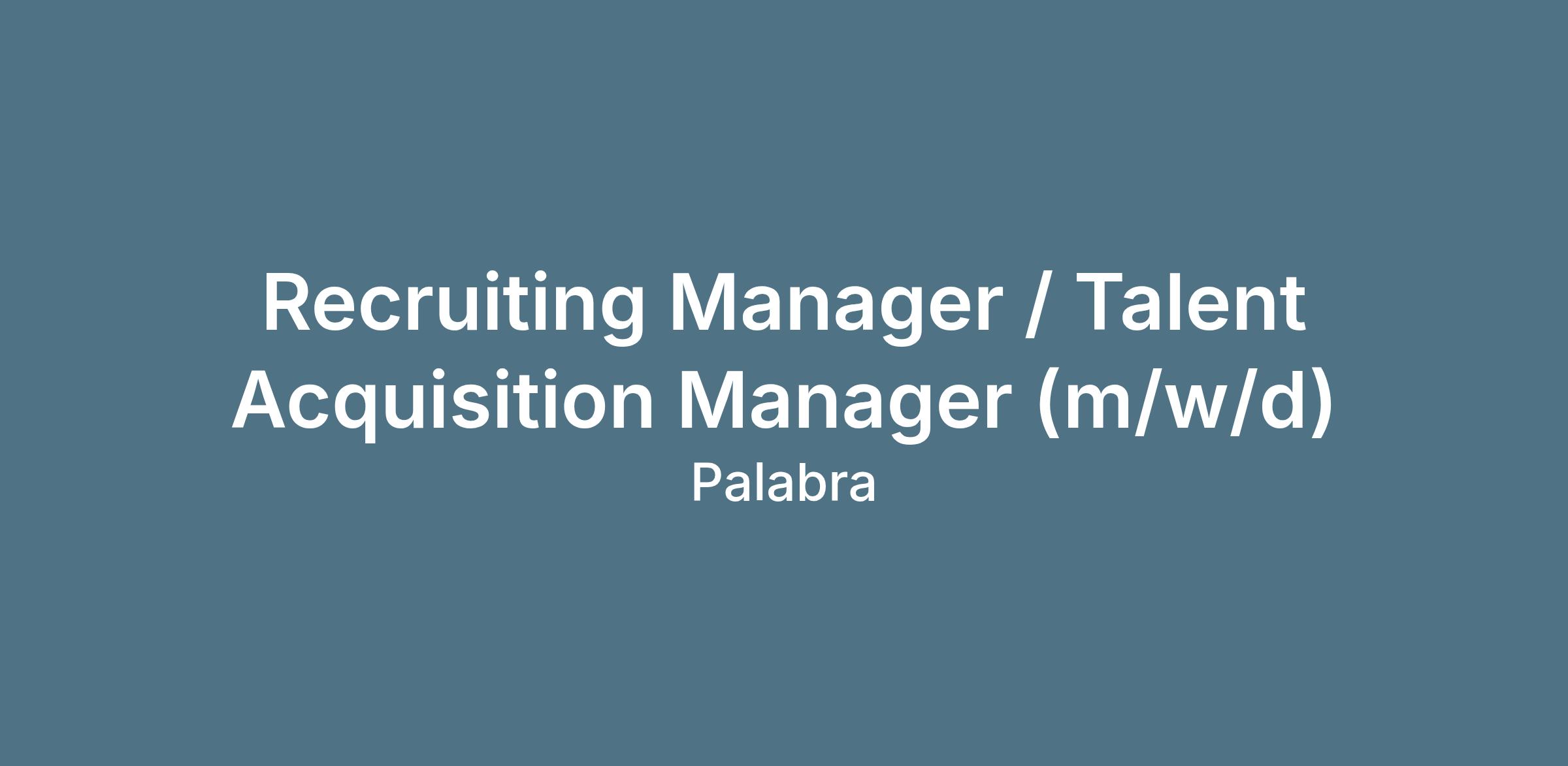 Recruiting Manager / Talent Acquisition Manager (m/w/d)