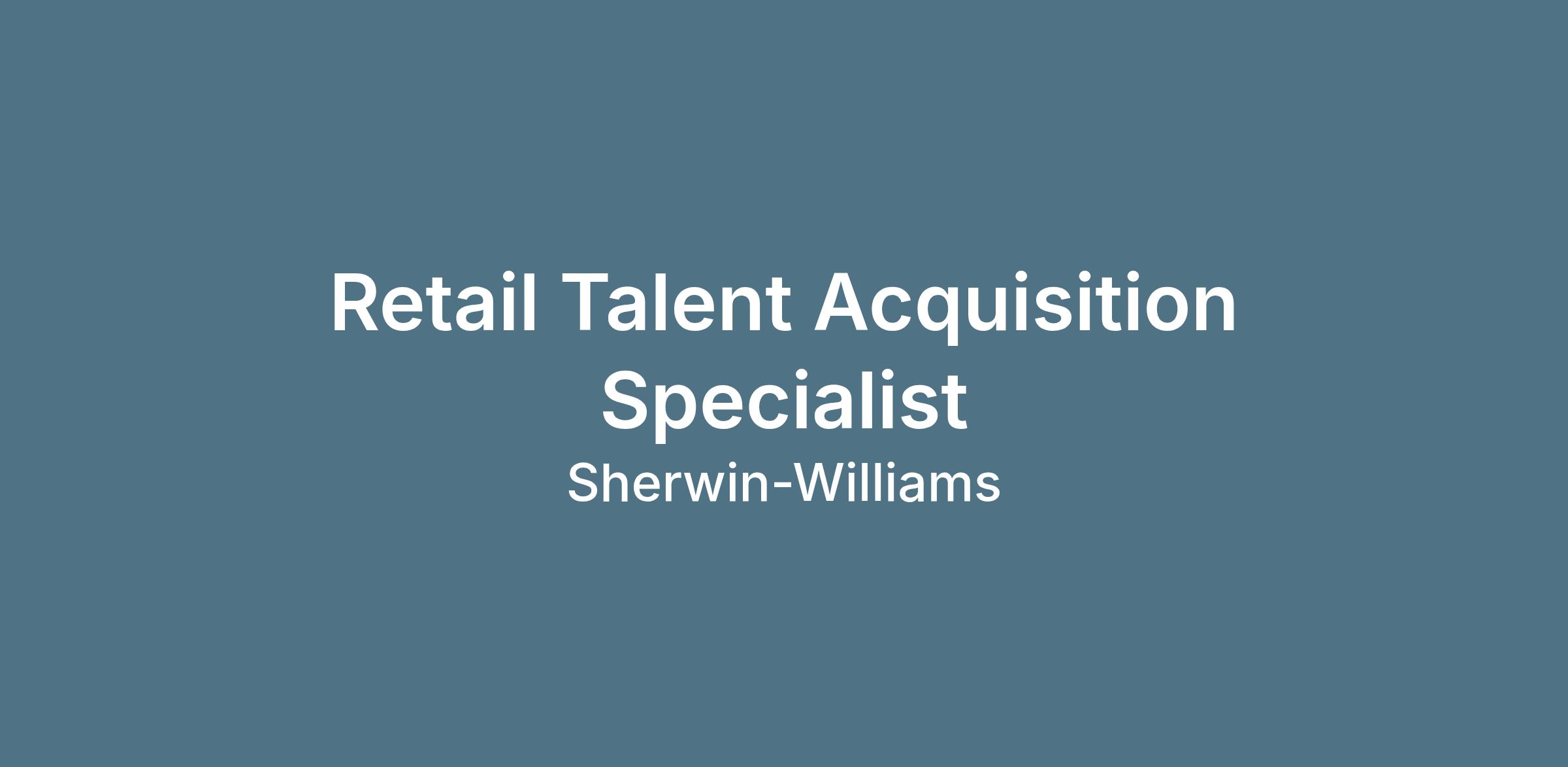 DescriptionThe Retail Talent Acquisition Specialist serves as a business partner by supporting hourly recruitment and hiring efforts for our stores Paint Stores Group (PSG) Division for the Eastern Division. This position will execute hourly recruitment strategy to meet business and hiring needs, provide full life cycle recruitment and sourcing support to ensure a best-in-class candidate experience.