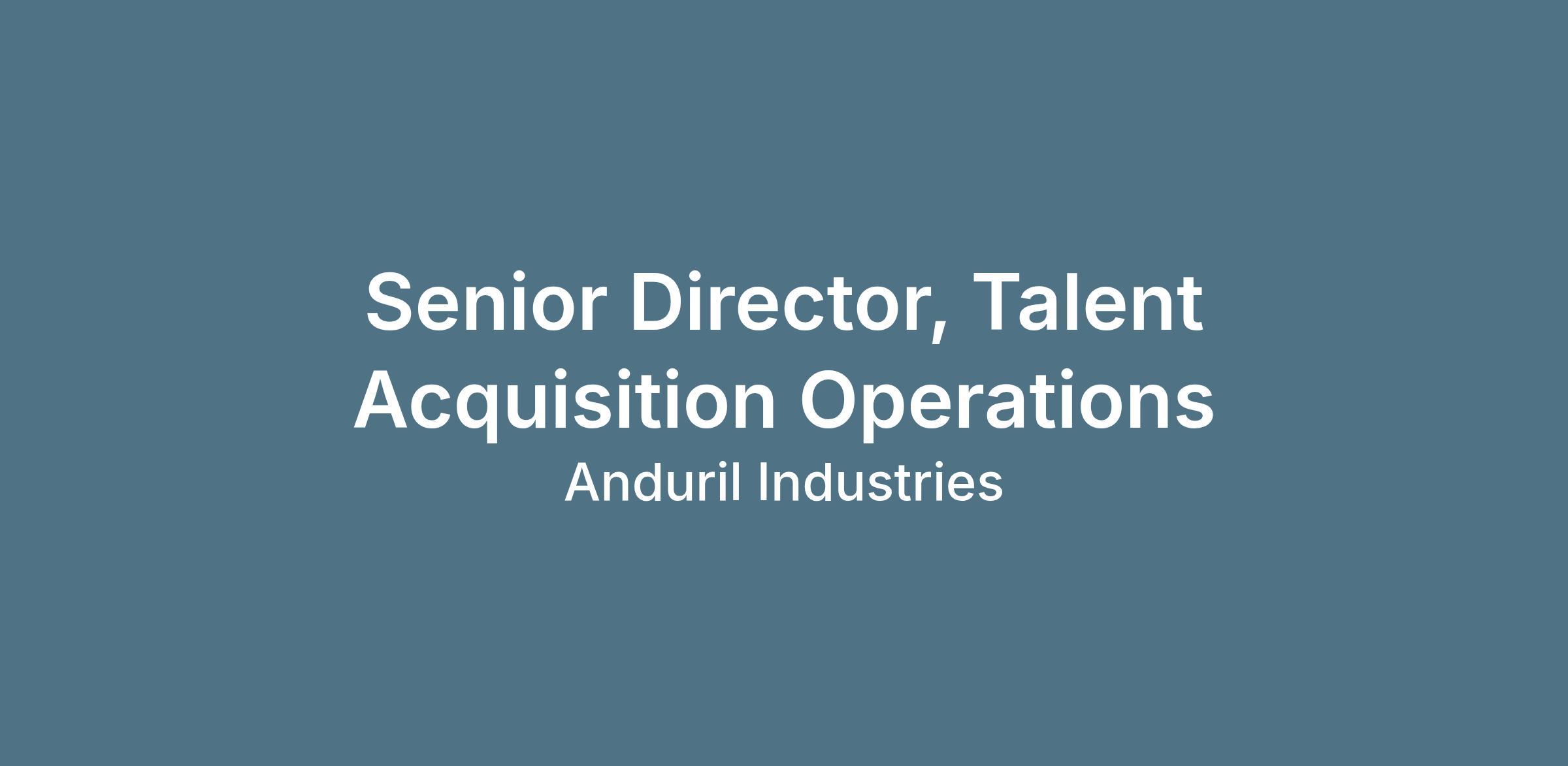 We are seeking a Senior Director of Talent Acquisition Operations to lead this vital function. This leader will oversee and scale these five operational pillars, driving initiatives that enhance efficiency, streamline processes, and support Anduril’s hiring strategy. You will partner closely with Finance, Corporate Technology, Recruiting, HR, and other cross-functional teams to create a seamless, mission-aligned talent engine that delivers measurable impact.