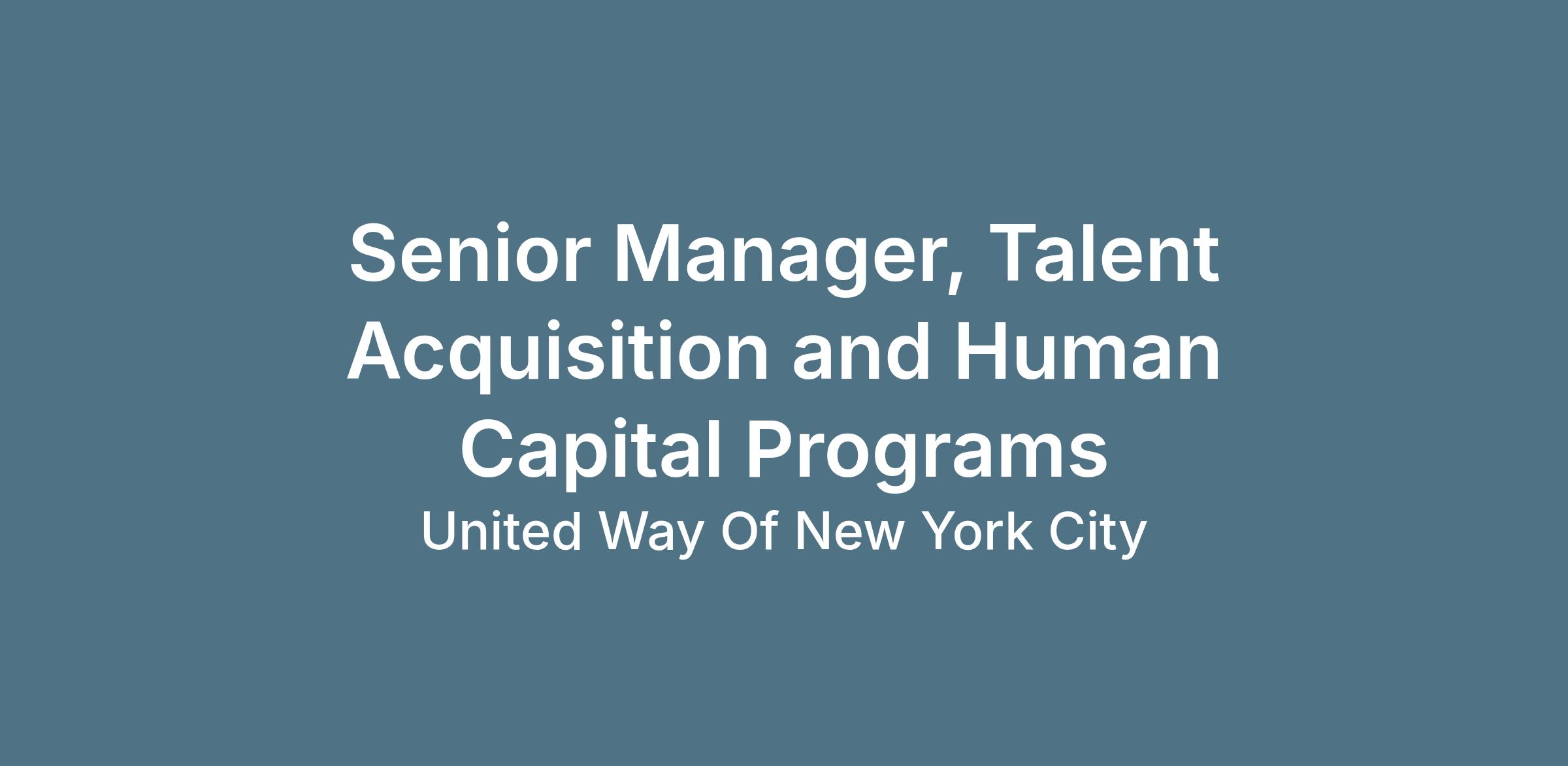 Reporting to the Vice President, Human Capital (VP), the Senior Manager, Talent Acquisition & Human Capital Programs plays a critical role in advancing UWNYC’s talent strategy by ensuring operational excellence across the employee lifecycle and building sustainable workforce programs that support meaningful community impact across New York City.