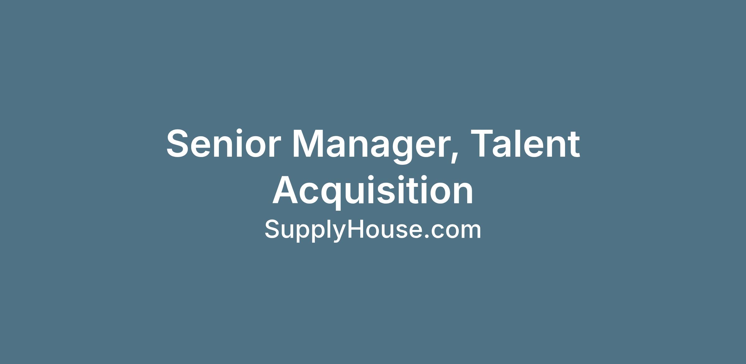 We are looking for a Senior Manager, Talent Acquisition to join our Human Resources Team. This individual will be responsible for shaping and driving SupplyHouse’s global hiring strategy across corporate, technical, and operations teams. As a trusted partner and thought leader to senior leadership, this individual will use data, market insights, and innovation to position SupplyHouse as a destination for top talent. If you're passionate about building scalable, inclusive, and high-impact recruiting practices, our culture and core values, and delivering an exceptional candidate experience, we’d love to hear from you!