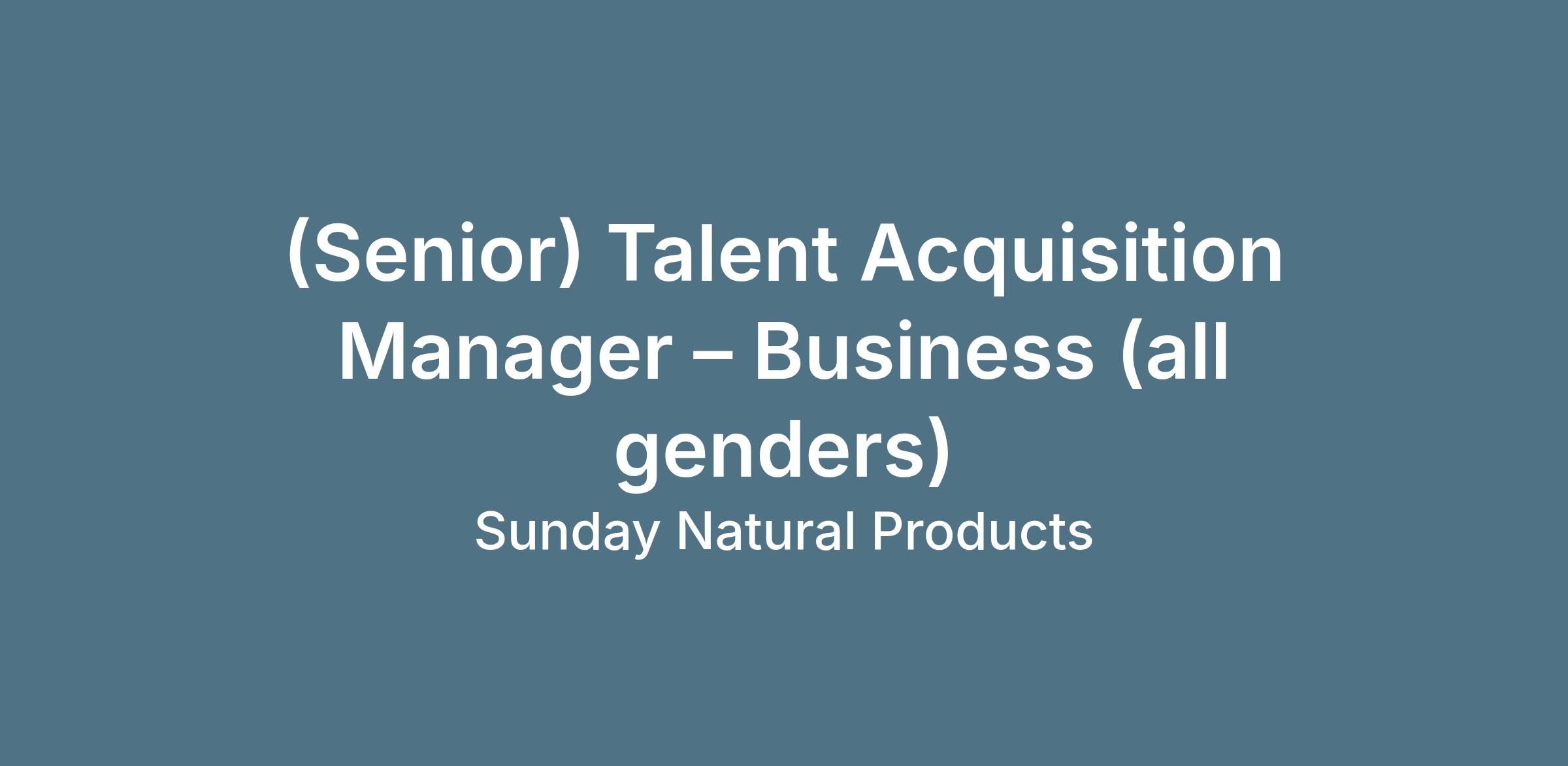 Sunday Natural is a purpose-driven e-commerce leader in premium nutrition, and we are seeking an experienced (Senior) Talent Acquisition Manager to drive talent acquisition across our business functions (such as Finance, HR, Customer Service, and Shop Management). You will act as a strategic partner to our business leads, translating departmental needs into successful hiring strategies. Your goal is to attract high-caliber professionals who share our passion for quality, ensuring a seamless and high-touch candidate experience that reflects the Sunday Natural brand.