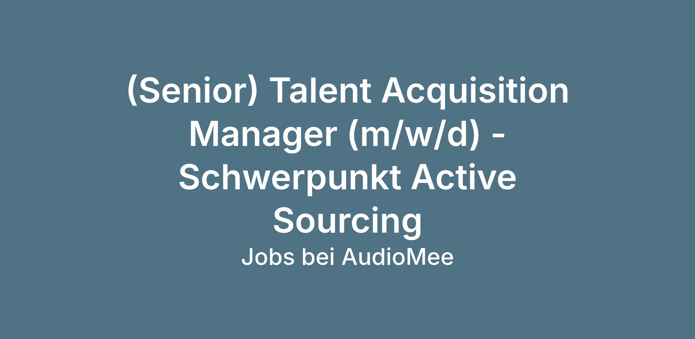 (Senior) Talent Acquisition Manager (m/w/d) - Schwerpunkt Active Sourcing