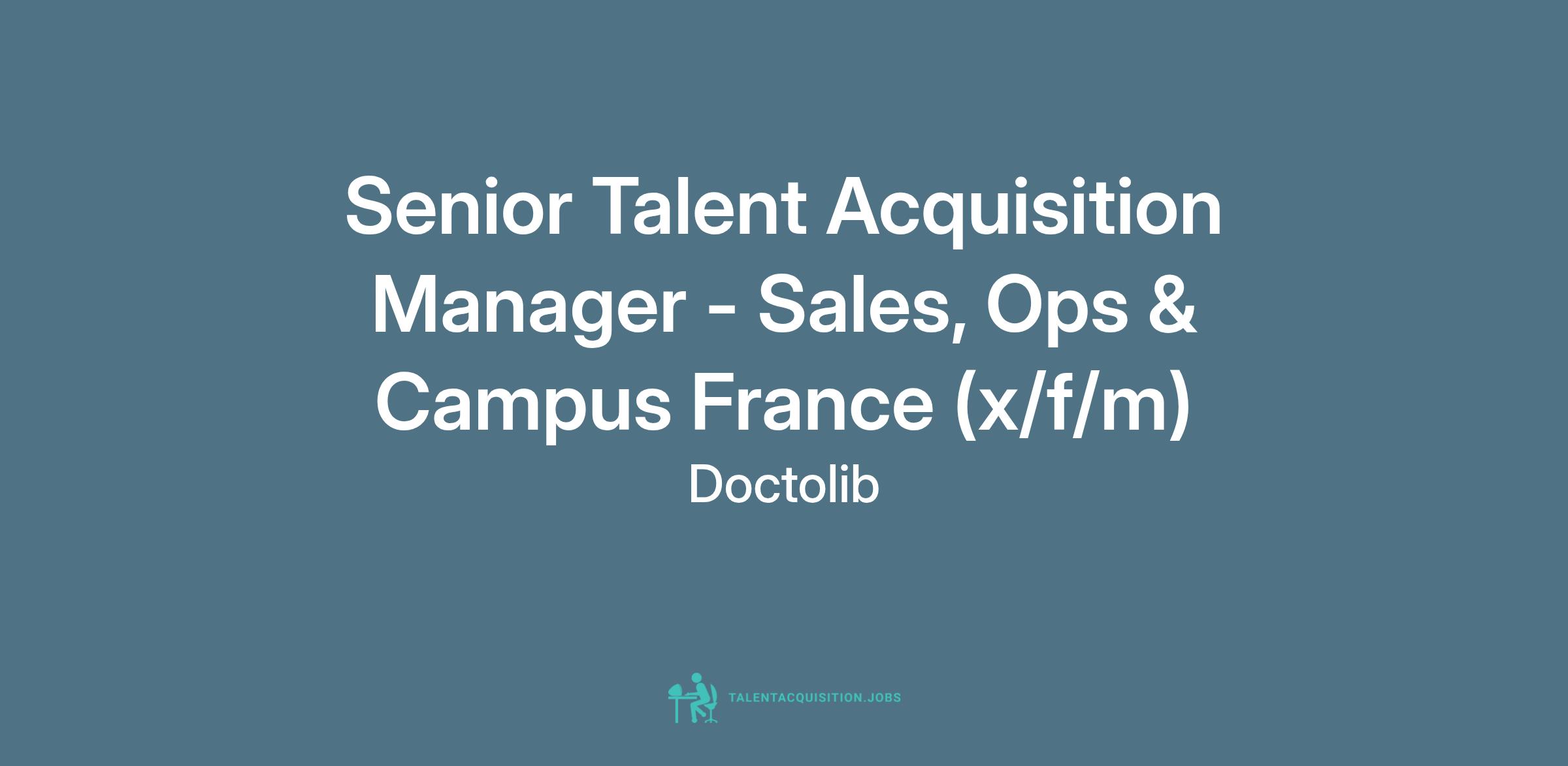As a Senior Talent Acquisition Manager at Doctolib, you'll be at the heart of building exceptional teams that drive our mission to improve healthcare for everyone. You'll lead recruitment efforts for our Sales & Operations teams while spearheading our Campus France strategy. Your impact will be felt across the organization as you shape the future of our talent pipeline and contribute directly to Doctolib's continued growth.