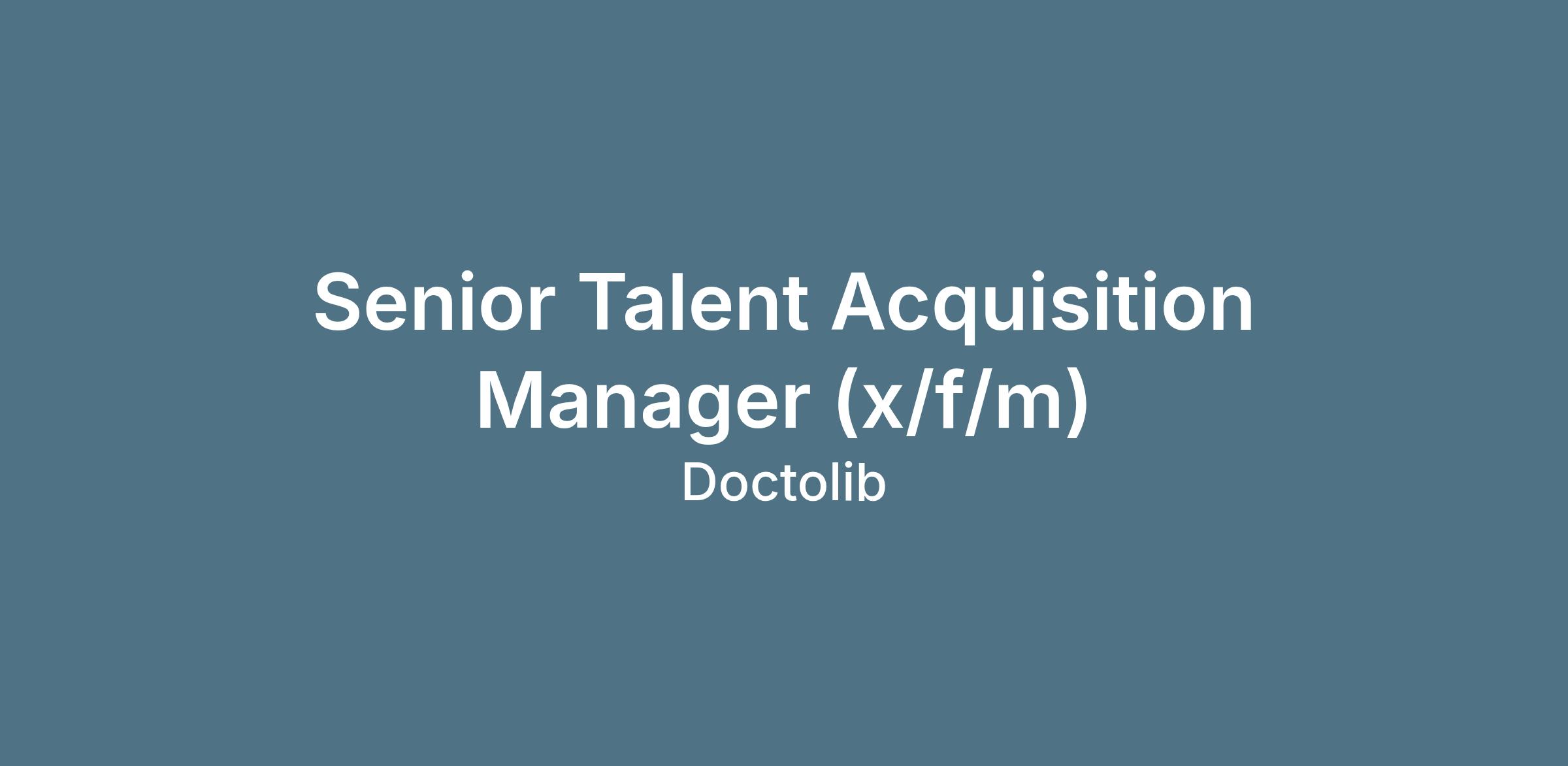 Doctolib is looking for a Recruitment Team Manager to join our Tech & Product Talent Acquisition team in Paris . You will play a strategic role in ensuring we achieve our ambitious tech hiring goals while helping us to re-shape the way we think, work, and collaborate.