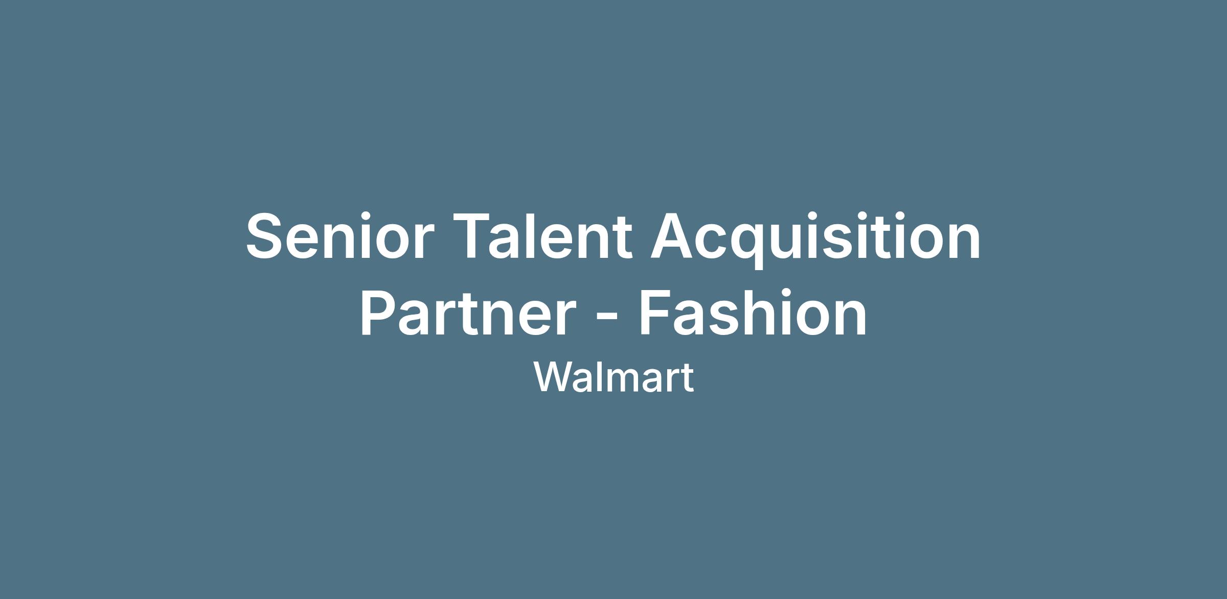 As a Senior Talent Acquisition Partner dedicated to Walmart’s Fashion & Design business, you will play a pivotal role in shaping the future of Walmart’s apparel and design teams. In this high-impact, business-facing role, you will serve as a strategic talent advisor to hiring managers within Fashion & Design, driving the end-to-end recruiting process for both internal and external candidates who will define the present and future of Walmart’s style and innovation.