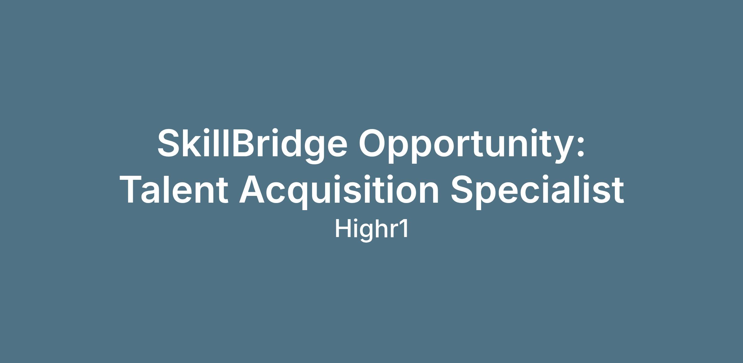Talent Acquisition Specialist Fellow through the DoD SkillBridge Program. This remote position is ideal for transitioning service members who are passionate about recruiting, especially those with prior military recruiting experience. Reporting directly to our Director of Recruiting Services, this fellowship offers hands-on experience sourcing high-impact talent and developing strategies to build dynamic talent pipelines.