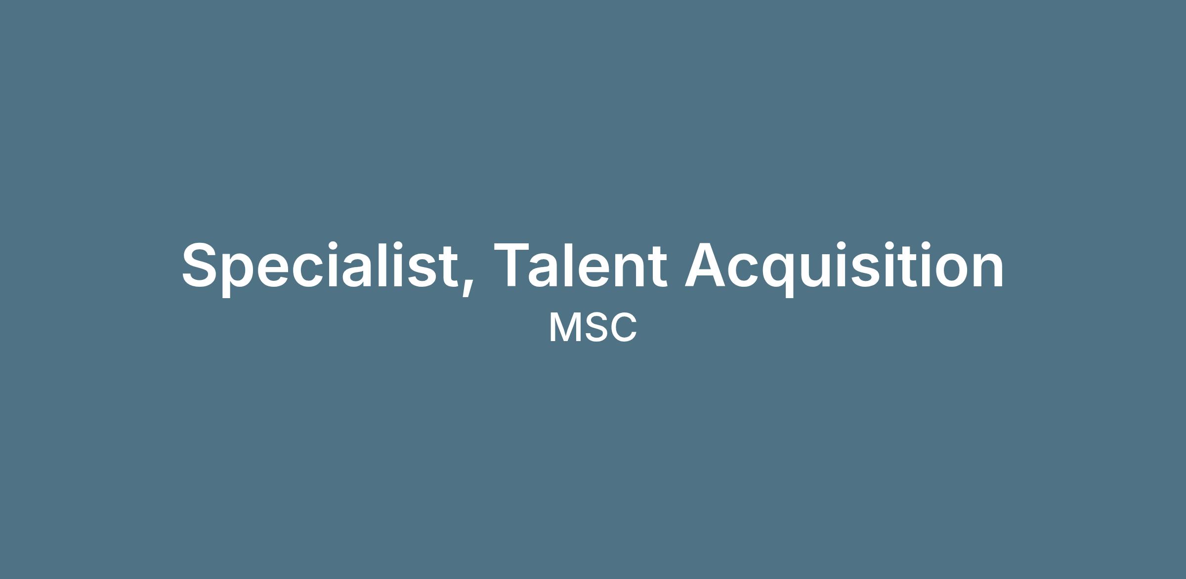 MSC is seeking a Specialist, Talent Acquisition to serve as both a strategic partner to the business and a driver of recruitment excellence. This role requires strong relationship management capabilities, the ability to influence hiring outcomes through data and market intelligence, and sound judgment to balance priorities across diverse teams and regions.
