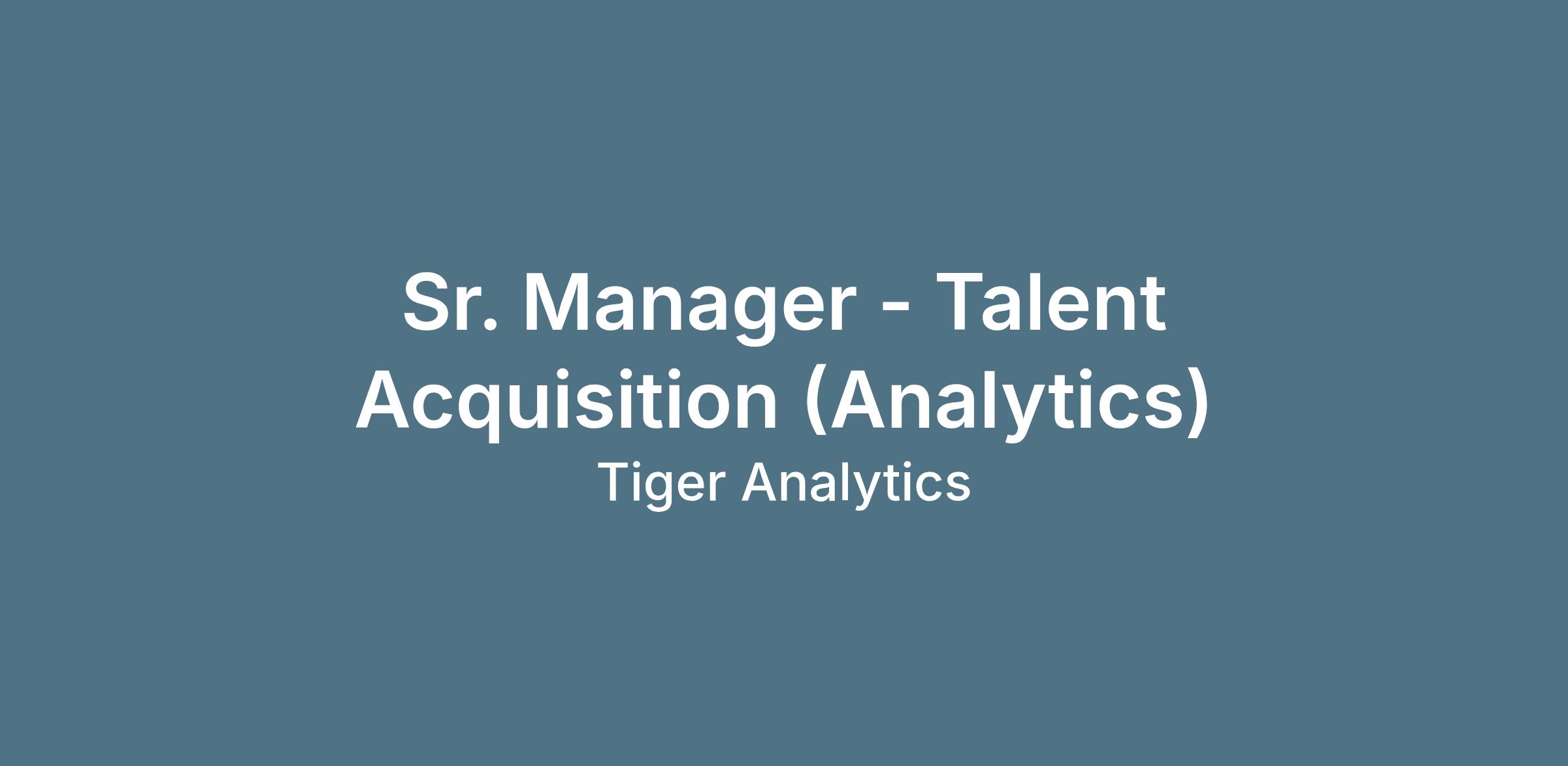 - Manage end-to-end recruiting for the Tiger Analytics team in the US and Canada