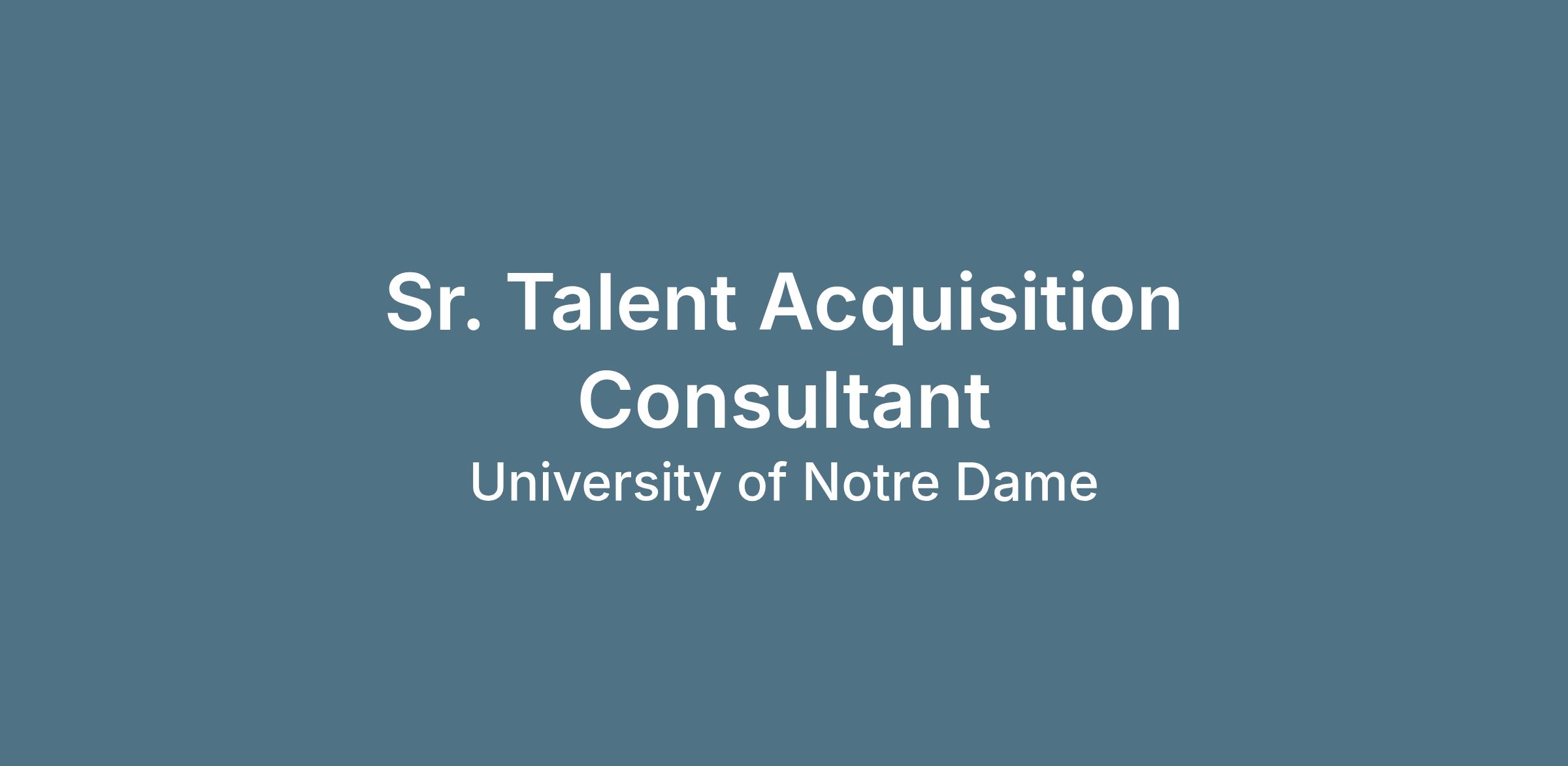 The University of Notre Dame is seeking an experienced, strategic, and relationship-driven Senior Talent Acquisition Consultant to help shape talent for our University Relations division.