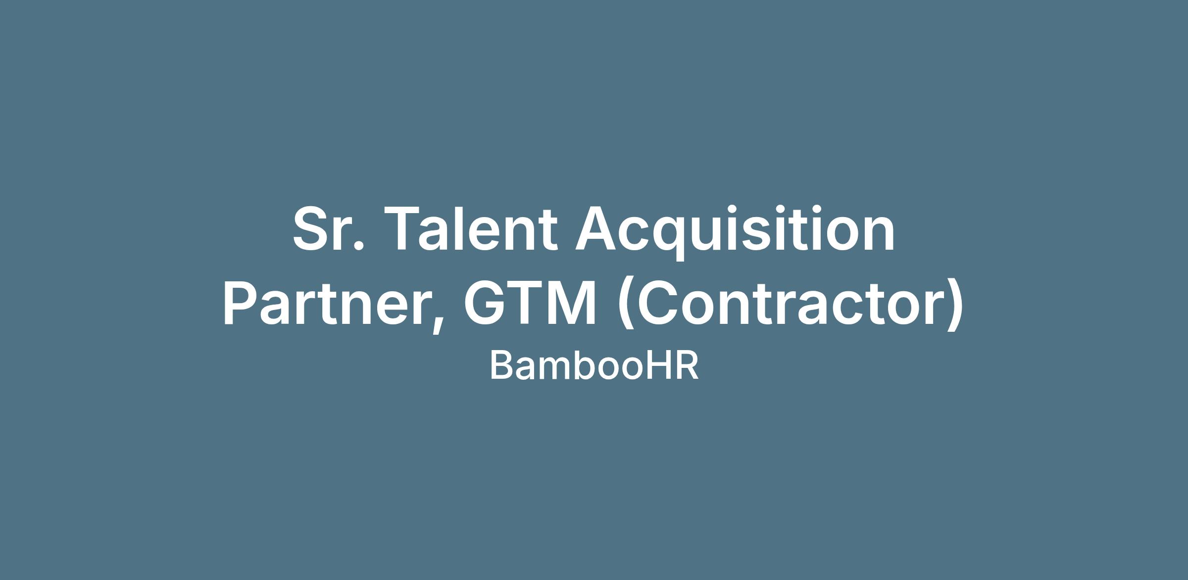 At BambooHR, people truly are our greatest asset—and our Talent Acquisition team plays a big role in helping teams do their best work. We’re looking for an experienced Sr. Talent Acquisition Partner, GTM to join us on a full time, 6-month contract. This is a hands-on, high-impact role for someone who loves moving quickly, partnering closely with leaders, and delivering a thoughtful, white-glove experience to candidates and hiring teams alike.
