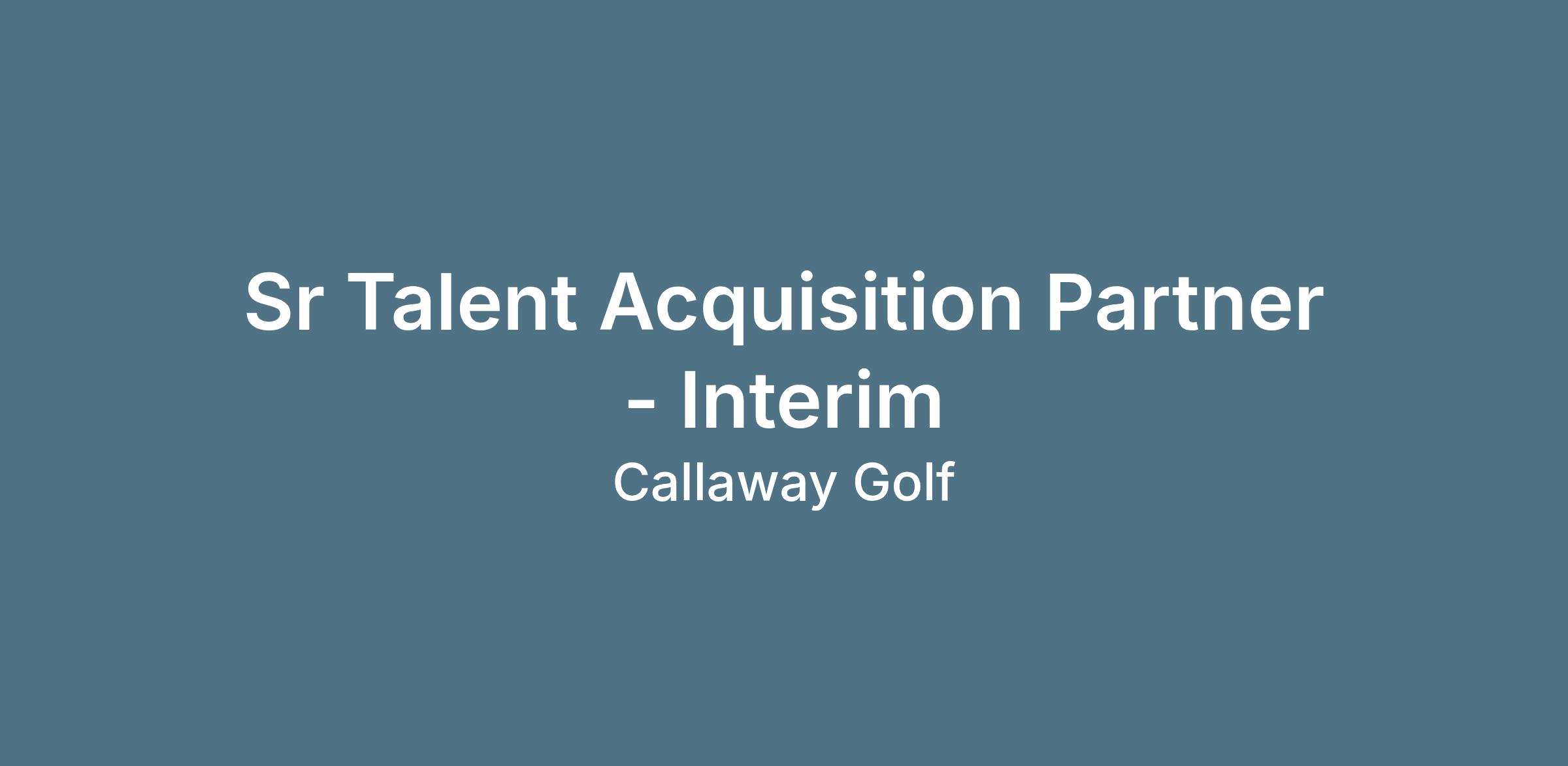 The Interim Senior Talent Acquisition Partner will support the business by collaborating closely with leaders, engaging with team members, and quickly integrating into Callaway’s culture. In this temporary role, you will help advance our employer brand and ensure high quality hiring outcomes across the organization.