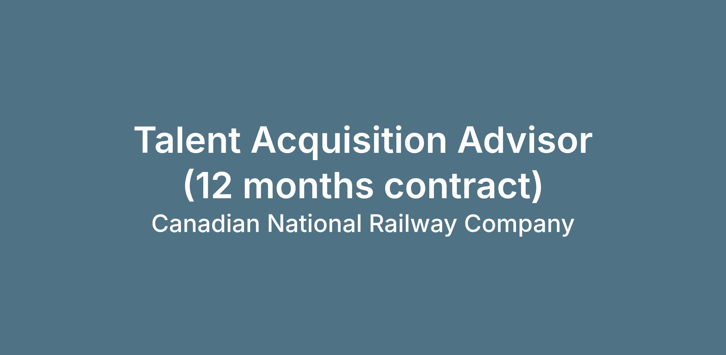 CN is looking for a passionate, self-motivated recruitment professional who is driven to deliver top talent to our team. CN’s people make the difference and, in this role, you will be responsible for attracting and hiring top talent to help enable CN’s objective of being North America #1 railroad of choice. The Talent Acquisition Advisor is responsible for candidate engagement throughout the hiring lifecycle including job posting management, sourcing, conducting and scheduling interviews, extending offers and completing necessary paperwork and processes to onboard new hires while proactively working to ensure CN builds a diverse workforce. You will join a fast-paced and dynamic Talent Acquisition team that is focused on continuing CN’s legacy of being a top employer year after year!