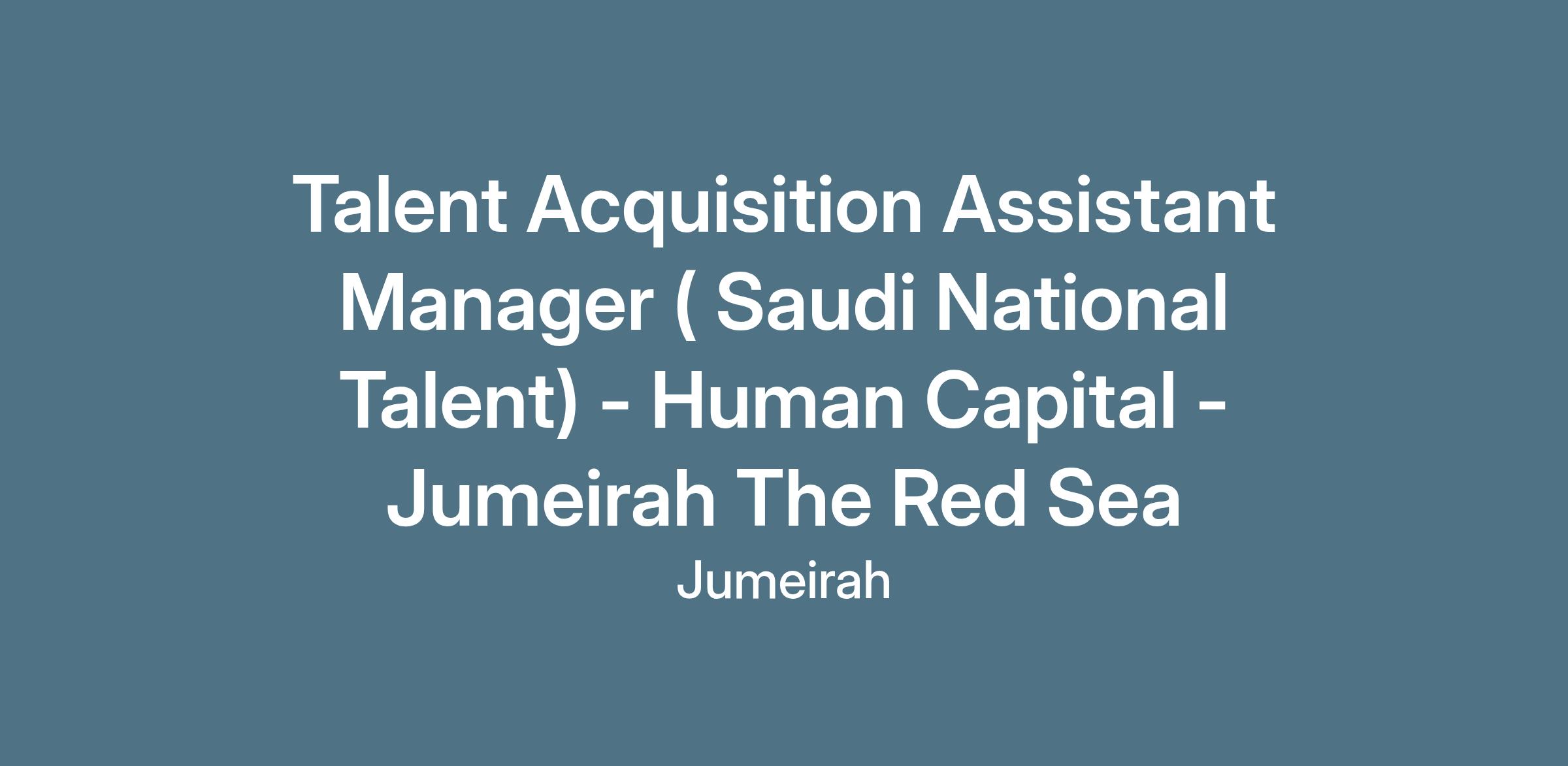 An exciting opportunity has arisen for a Talent Acquisition Assistant Manager (Saudi National Talent) to join Jumeirah The Red Sea.