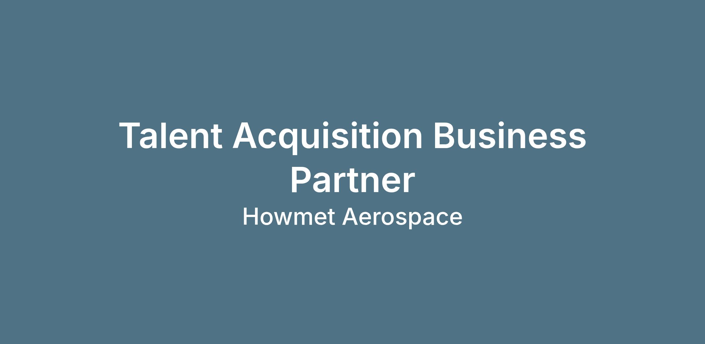 ResponsibilitiesHowmet Aerospace Inc. is seeking a Talent Acquisition Business Partner to join our Talent Acquisition (TA) Center of Excellence, reporting directly to the Senior Manager, Talent Acquisition.