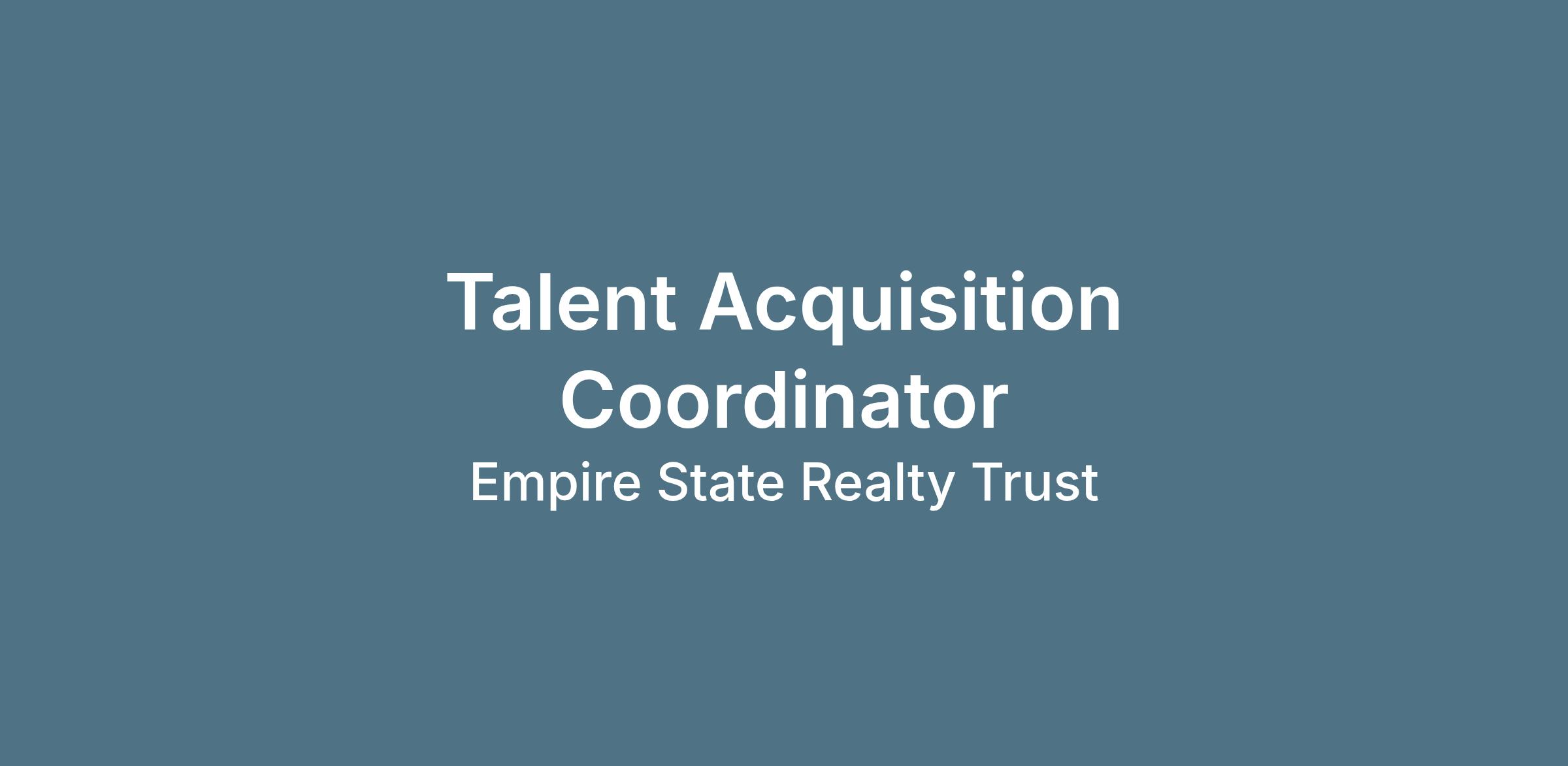 By delivery of talent solutions to hiring managers, the Talent Acquisition Coordinator directly supports Empire State Realty Trust’s continued business growth and hiring quality.
