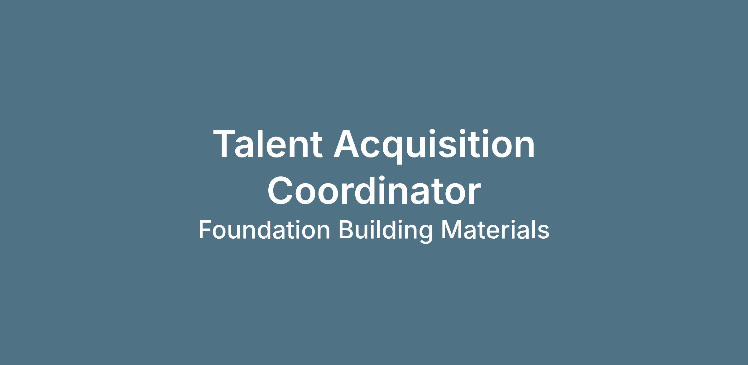 At Foundation Building Materials (FBM), the Talent Acquisition Coordinator plays a critical role in supporting the Talent Acquisition function by coordinating and executing recruitment and onboarding activities. This position partners closely with the Talent Acquisition Manager, hiring managers, and Human Resources team members to ensure a positive candidate experience and efficient hiring process. The Talent Acquisition Coordinator contributes to building a high-performing workforce by ensuring recruitment operations are accurate, compliant, and aligned with FBM’s business needs. This is a 100% onsite position in our Santa Ana, CA home office. Â
