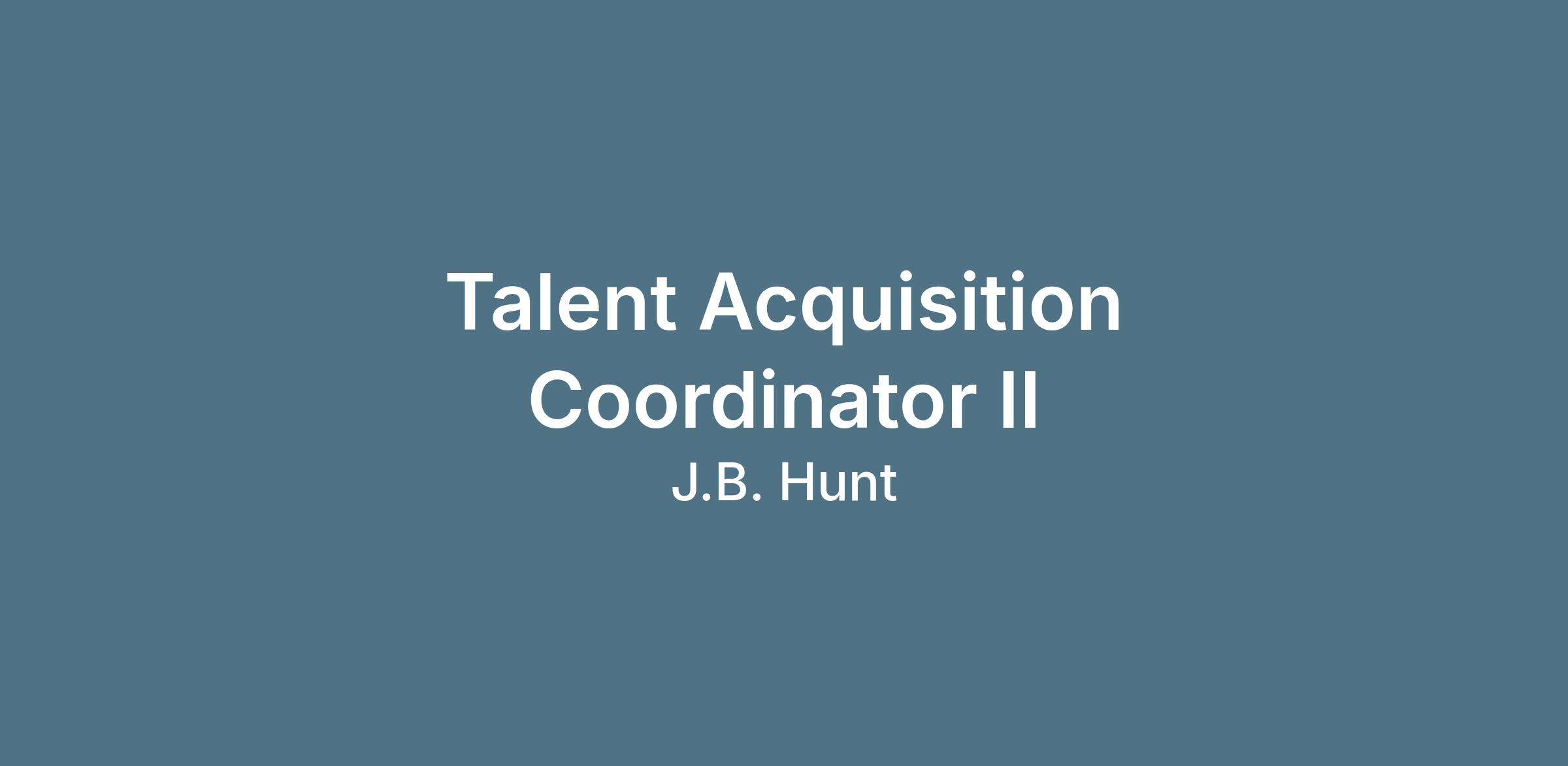 Talent Acquisition Coordinator IIDepartment: