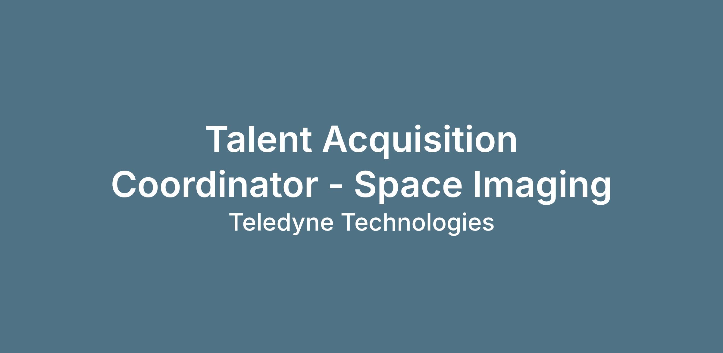 Join Teledyne Technologies’ Talent Acquisition team supporting advanced Space Imaging programs. In this role, you’ll help support Space Imaging businesses across locations such as Camarillo, CA; Bromont, Canada; and Chelmsford, UK. You’ll play a key role in delivering a positive hiring experience by screening candidates, coordinating interviews, supporting recruiters, and ensuring candidates and hiring managers move smoothly through the recruitment process.