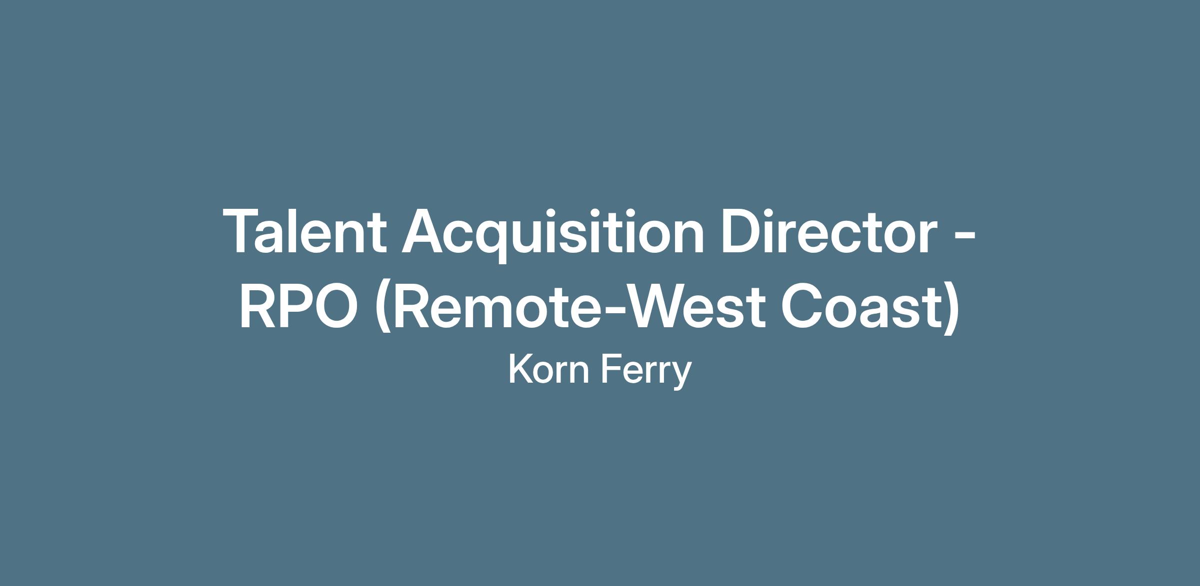 Korn Ferry is seeking a Talent Acquisition Director to support our RPO client. This role is remote, only individuals on the West Coast (PST time zone) will be considered.