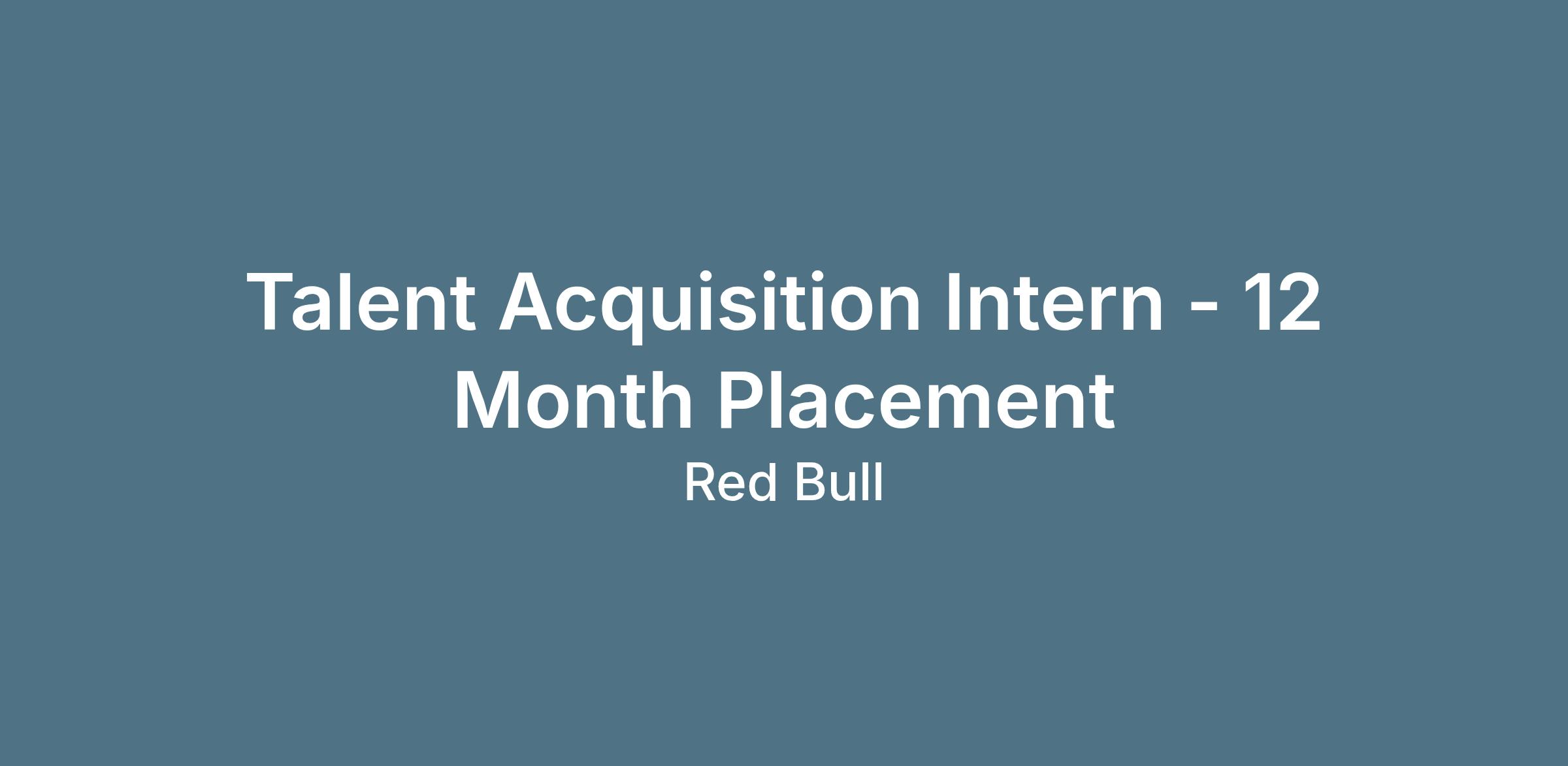 At Red Bull, we don't just hire people, we energise potential. As our Talent Acquisition placement Intern, you'll gain hands-on experience supporting end-to-end recruitment across our portfolio as well as support projects across the HR team. Our Talent plans for 2026 include building strong Apprenticeship, Intern and Graduate cohorts which can build our internal talent benches. You’ll partner with the Talent Acquisition Manager and the wider People Team to attract brilliant talent, support hiring managers, and elevate the candidate experience.