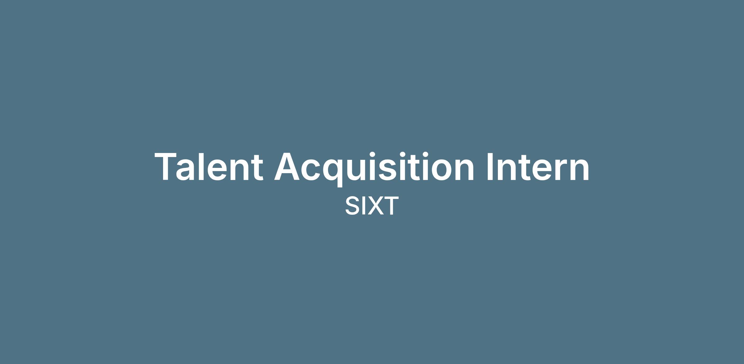 We are looking for a Talent Acquisition Intern (m/f/d) to join our team at SIXT. In this role, you will support our recruitment team in attracting top talent, assist with administrative and coordination tasks throughout the hiring process, and contribute to building a strong and diverse workforce in an international and fast-paced environment. Your support helps ensure smooth recruiting operations while enabling our team to focus on connecting with the best candidates. If you are organized, communicative, and eager to learn about recruiting processes, Join Team Orange!
