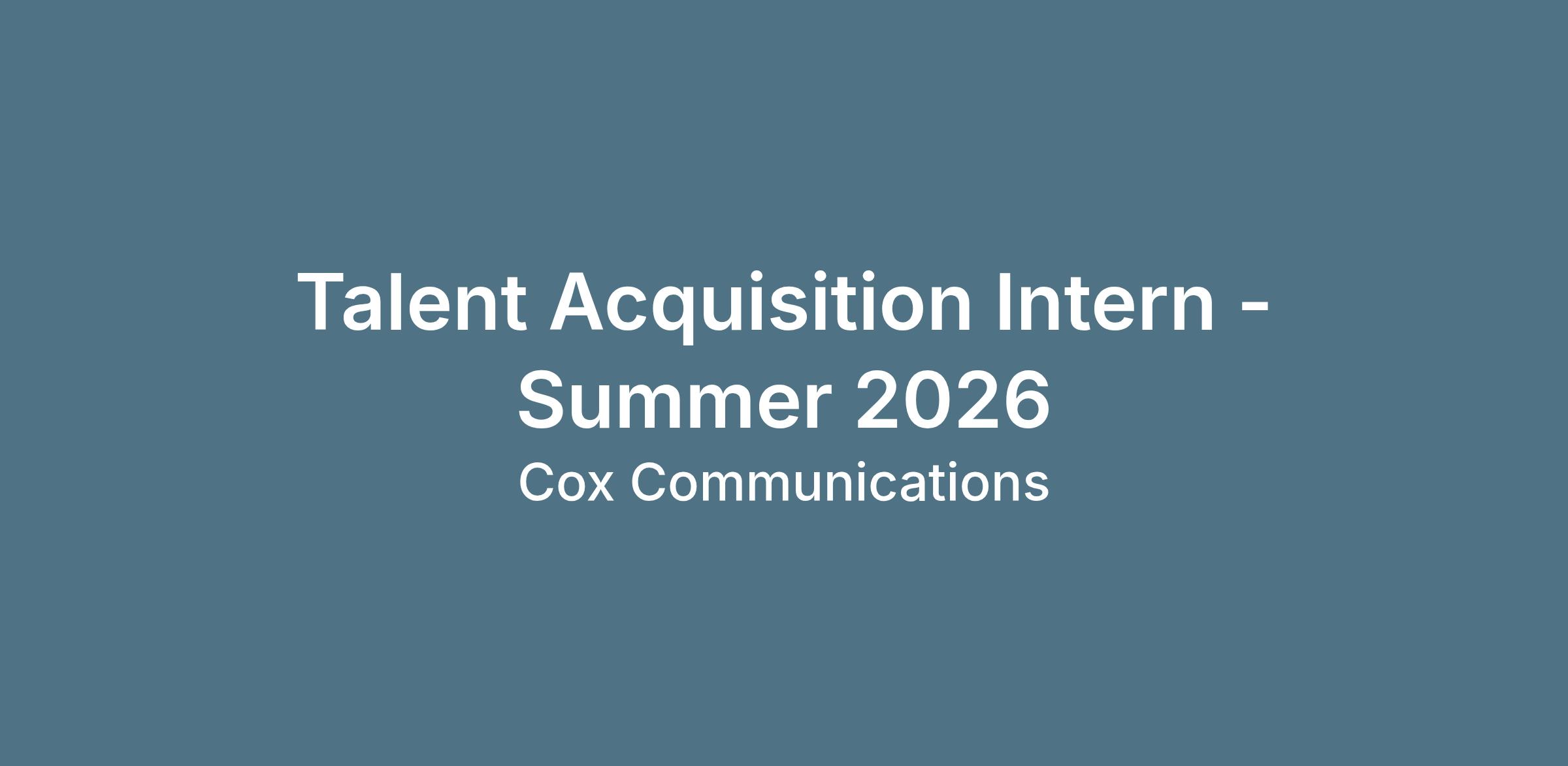 Across the Cox family of businesses (Cox Enterprises, Cox Communications and Cox Automotive), we’re looking for a Talent Acquisition intern to join our team and learn from the best. Ready to collaborate with us and work at a great company that truly cares about you and your future? Keep reading!Â