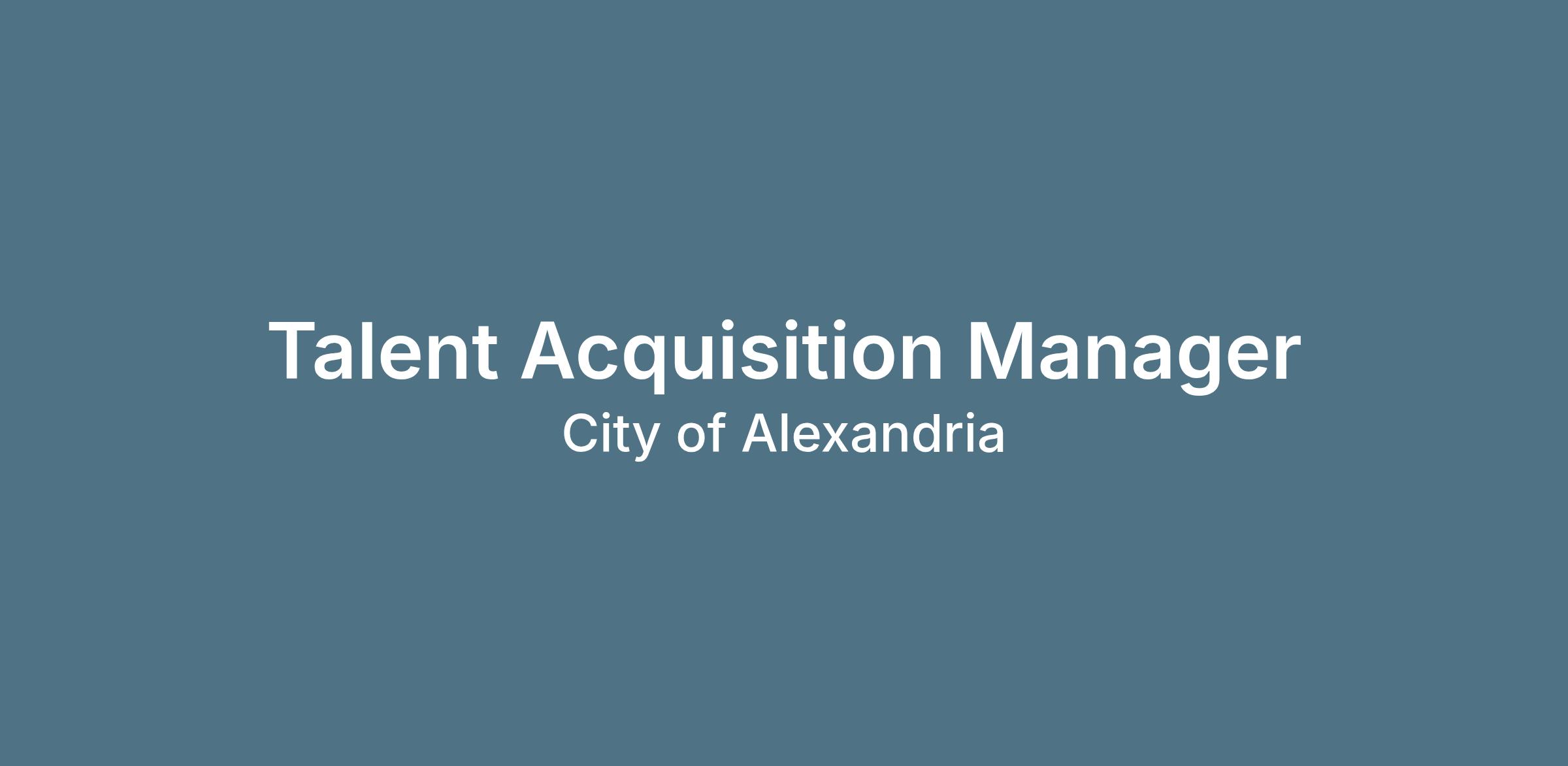 The Talent Acquisition Manager for the City of Alexandria is a strategic human resources leader responsible for planning, developing, and executing comprehensive recruitment strategies to attract, hire, and retain a highly qualified and diverse workforce. This position plays a critical role in supporting citywide workforce needs by aligning talent acquisition initiatives with organizational goals, service delivery priorities, and community expectations.