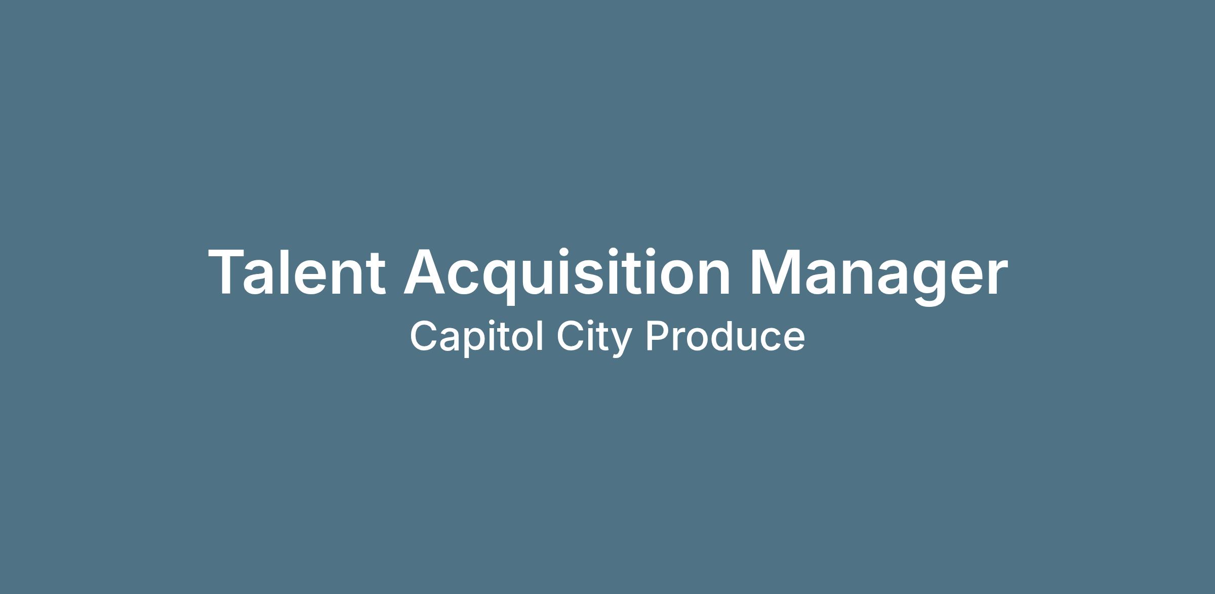 The Talent Acquisition Manager plays a critical role in shaping the future of Capitol City Produce.