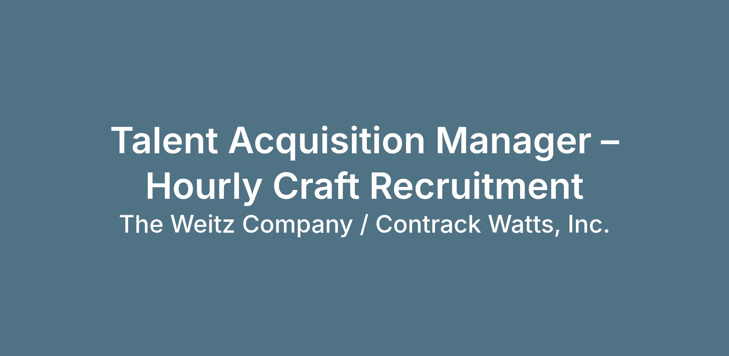 Talent Acquisition Manager – Hourly Craft Recruitment