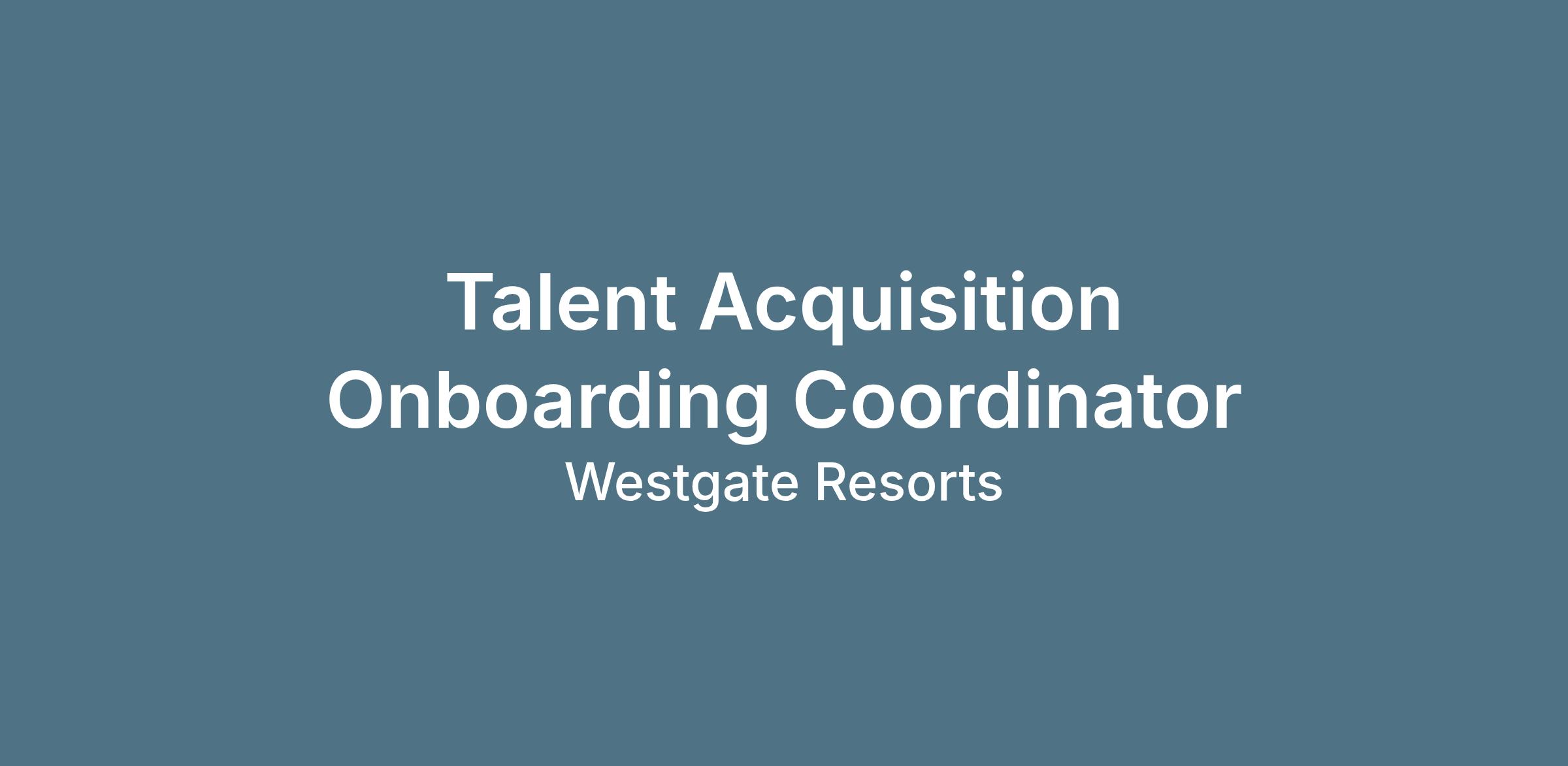 The Talent Acquisition Onboarding Coordinator drives a seamless new hire onboarding experience across multiple Westgate Resorts properties. This role manages high-volume activity; 15-25+ active hires at a time, ensuring compliance, accuracy, and an exceptional candidate experience from offer acceptance through New Hire Orientation.