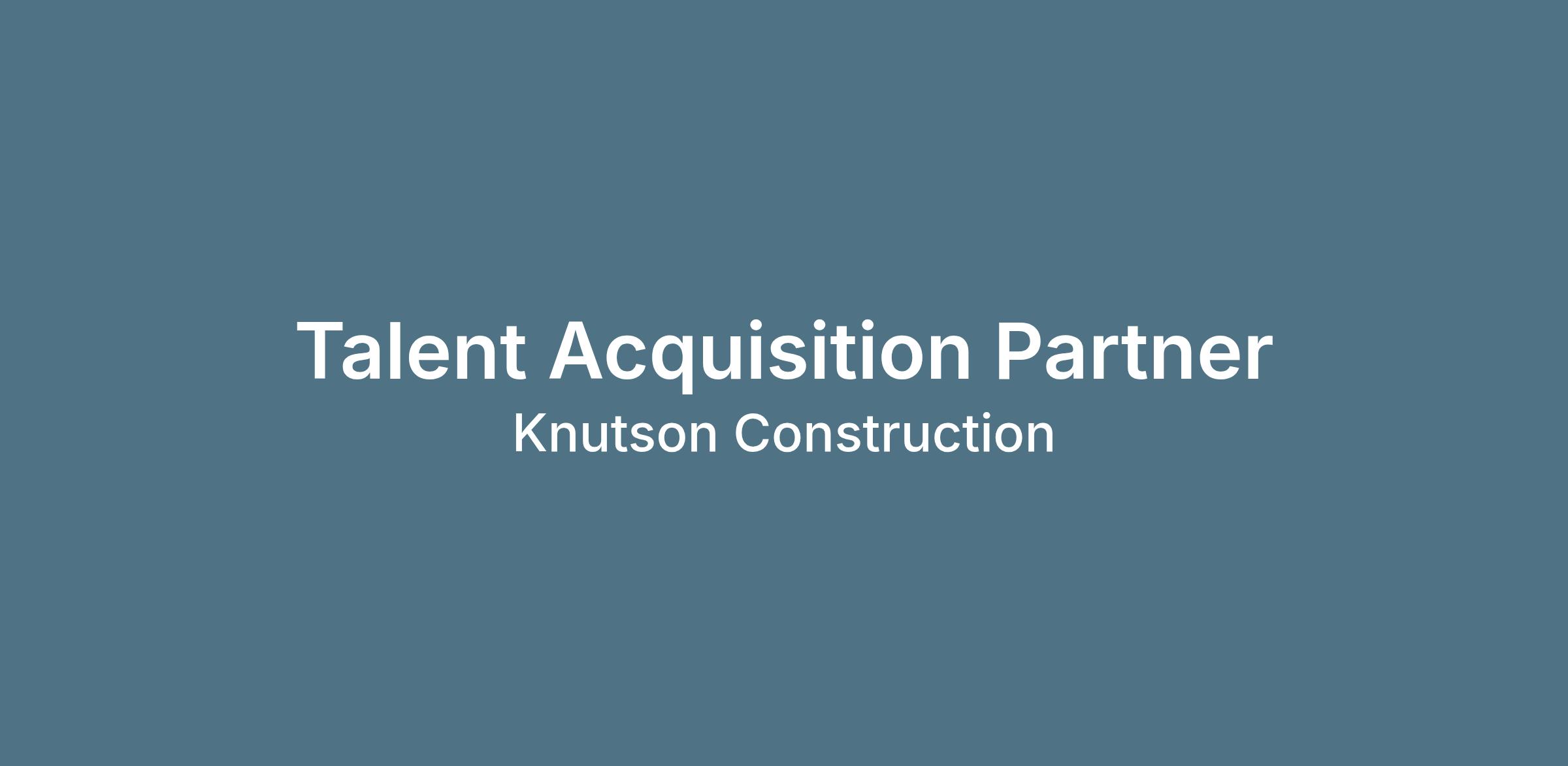 We are seeking a proactive and relationship-focused Talent Acquisition Partner to join our team at Knutson Construction. In this role, you will collaborate closely with leaders and hiring managers to attract, engage, hire, and welcome diverse talent that supports our company’s growth and culture. You will own full cycle recruiting efforts, build meaningful candidate relationships, and help deliver an exceptional experience from sourcing through onboarding. If you are energized by building meaningful connections, delivering an exceptional journey for every candidate, and playing an active, strategic role in shaping our talent pipeline, this opportunity is a great fit for you.