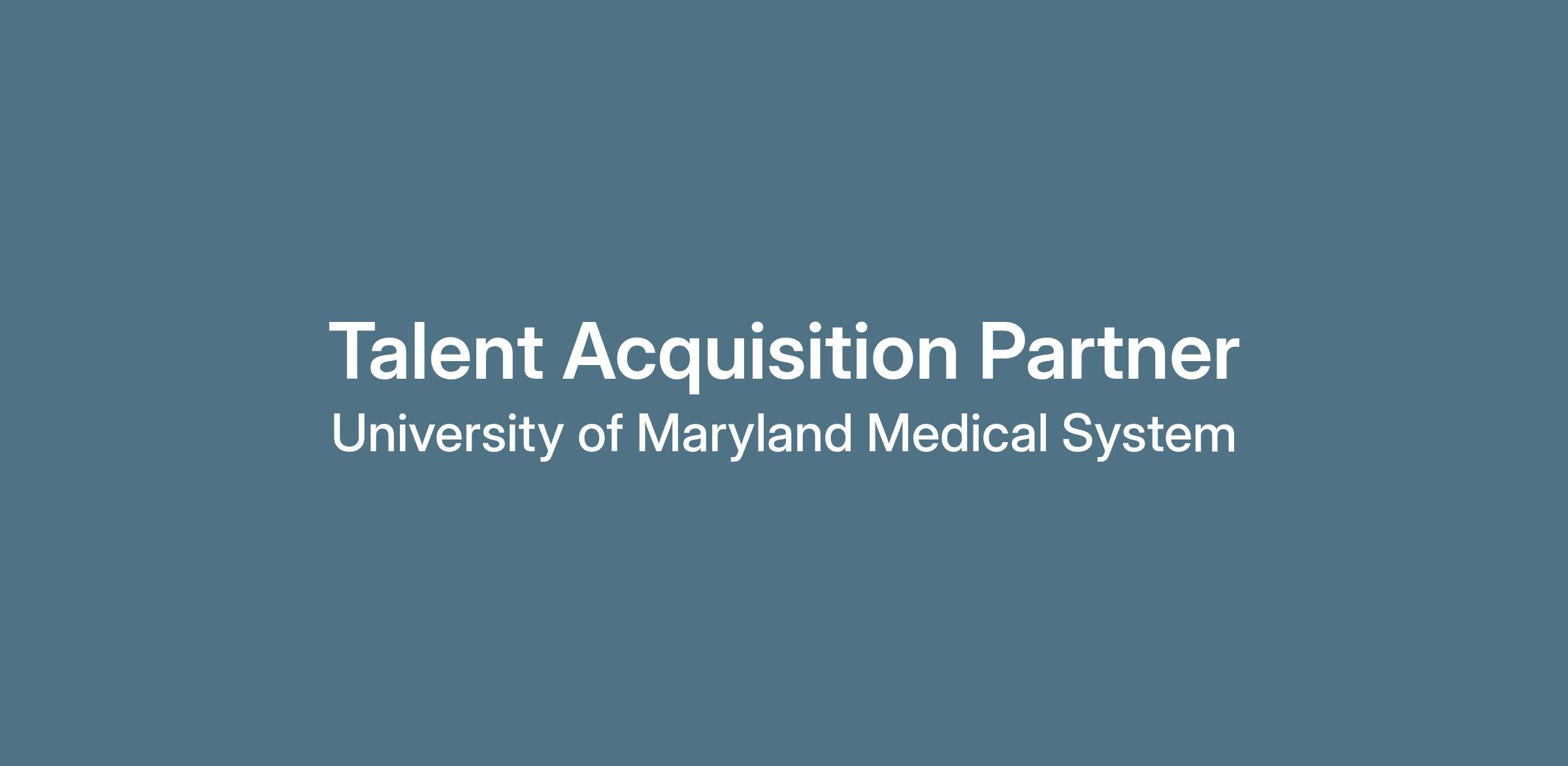 Under general supervision from Talent Acquisition Leadership, the Talent Acquisition Partner (TAP) will leverage our platforms to redefine Talent Acquisition for UMMS. The TAP carries a full-cycle requisition load, identifies and engages the right talent, follows proper methodology and technical processes of the system while assisting candidates and employees find the right job fast. Additionally, the TAP will use advanced tools and data-driven strategies, collaborating closely with hiring leaders, Sourcers, and operations support to deliver high-quality hires. The TAP will also embrace emerging technologies, including agentic and generative AI, to enhance the recruitment process, improve decision-making, and operational efficiency. The TAP will manage and prioritize multiple searches, projects, and stakeholder requests with a strong sense of urgency and accountability, while exhibiting technical knowledge, business acumen, and emotional intelligence.