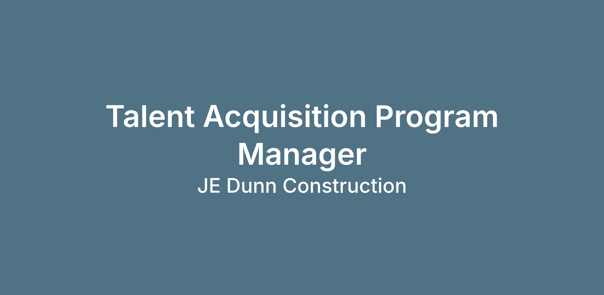 The Talent Acquisition Program Manager is responsible for the planning, design, implementation, communication and administration of a variety of JE Dunnās talent acquisition programs, projects, and initiatives.