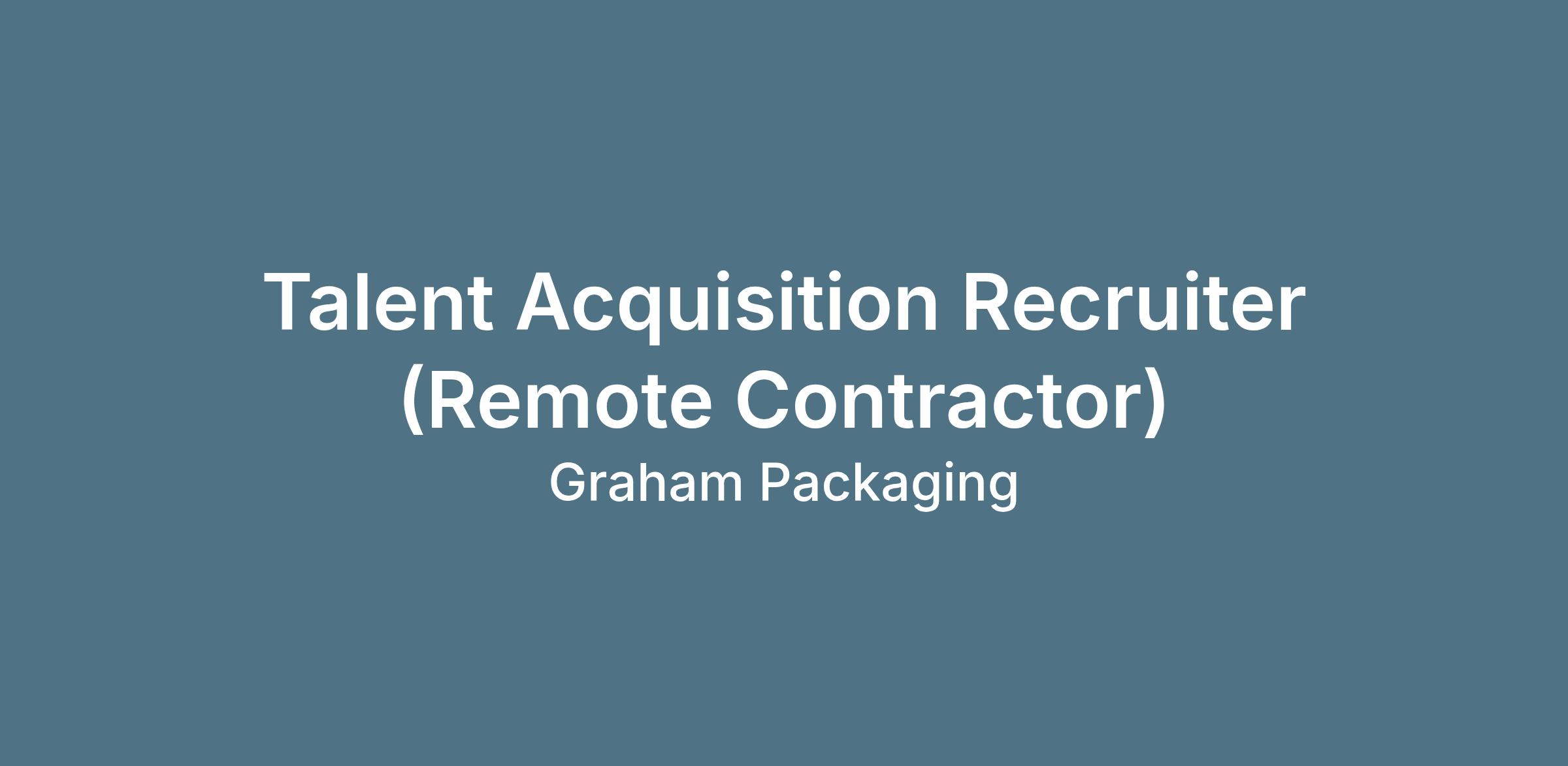 Are you looking for an excellent career opportunity that will enable you to utilize and grow your talent acquisition recruiting experience? Then come join the Talent Acquisition Team at Graham Packaging!