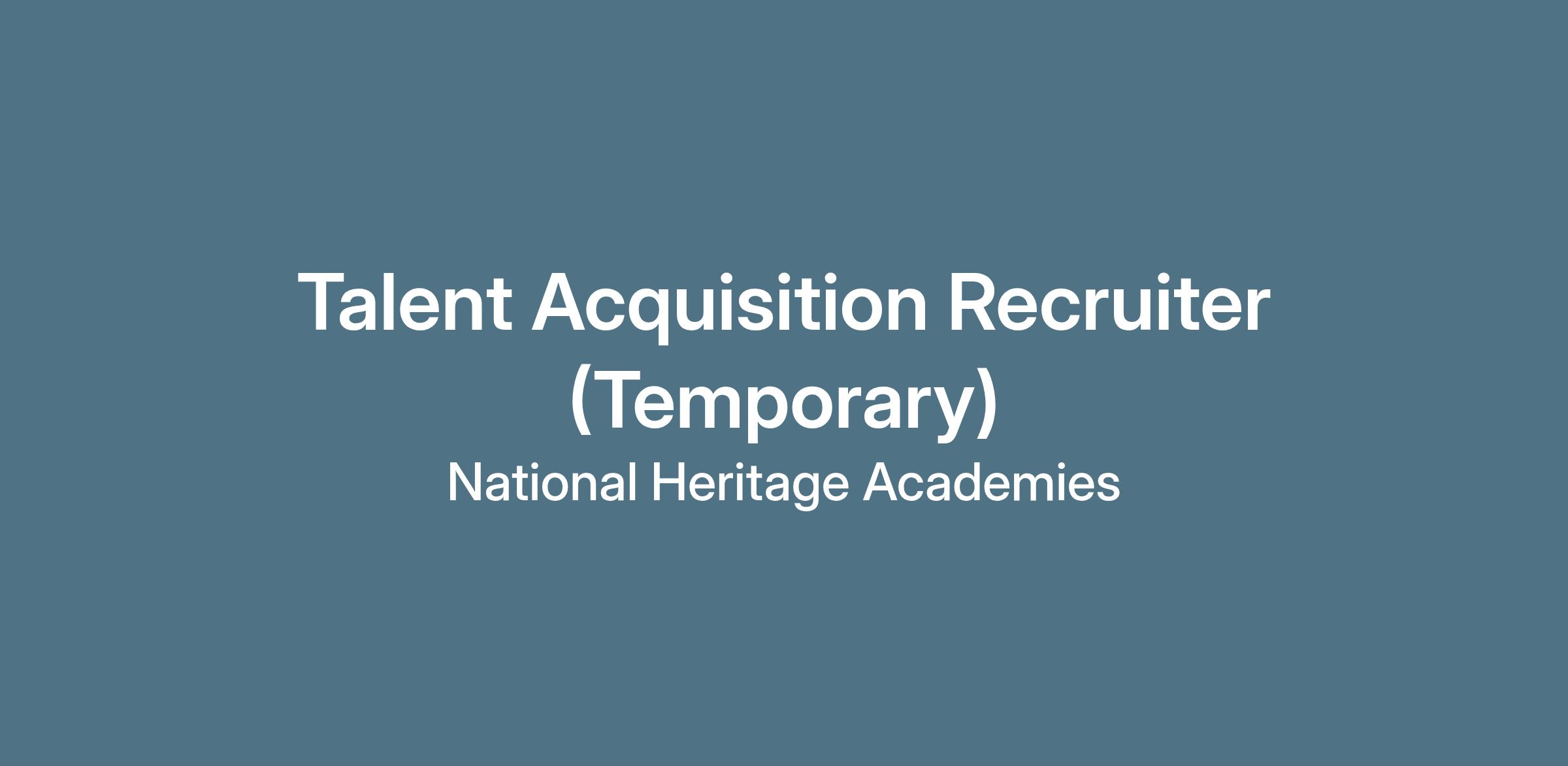 The Talent Acquisition Recruiter (Temporary) at National Heritage Academies (NHA) reports to the Director of Talent Acquisition and provides full-cycle recruiting support for positions at NHA’s Service Center, the corporate headquarters. The Recruiter partners with hiring managers to attract, assess, and select top talent for both exempt and non-exempt roles, representing NHA’s mission, culture, and values while delivering an exceptional candidate and stakeholder experience.