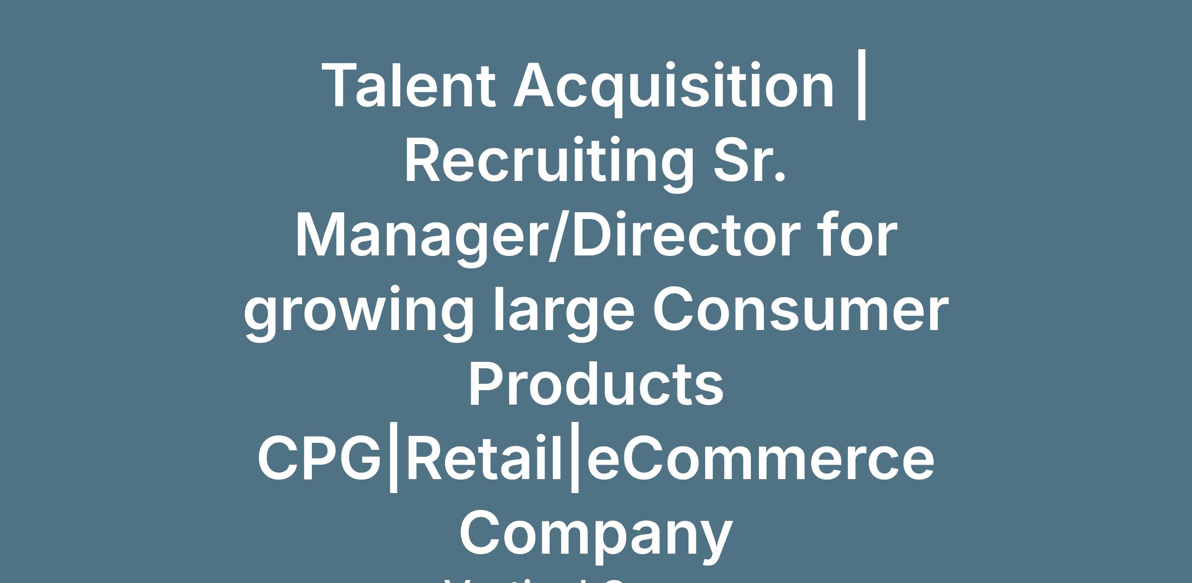 Talent Acquisition | Recruiting Senior Manager or Director