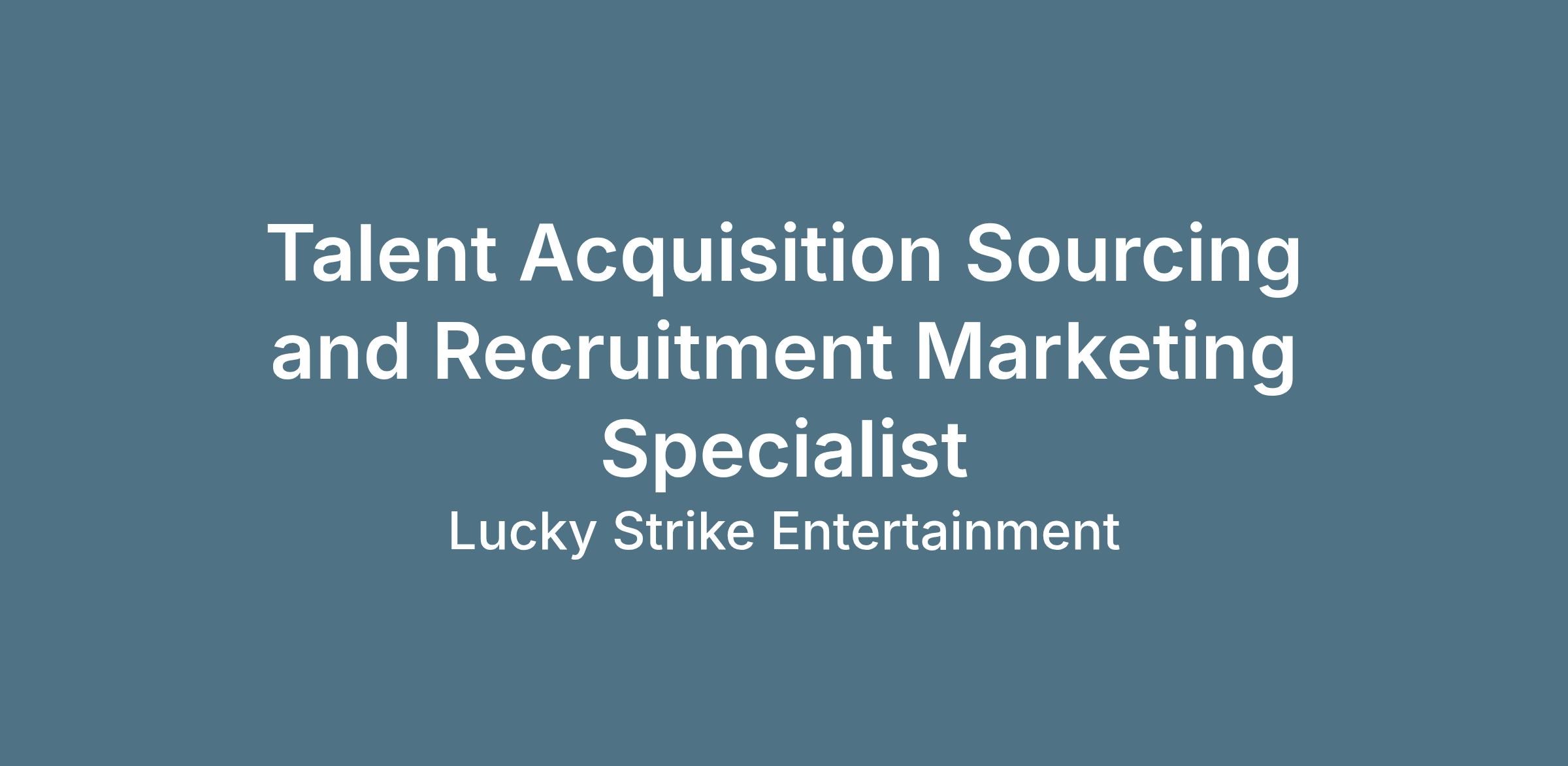 The Talent Acquisition Sourcing and RM Specialist is a critical force multiplier for Lucky Strike Entertainment's recruiting function, responsible for proactively building and nurturing talent pipelines across the full spectrum of our hiring needs from front-line field management and hourly associates to corporate leadership and sales roles. Sitting at the intersection of candidate strategy, marketing, and data, this role requires equal parts hunter instinct, relationship builder, and analytical thinker. You will manage our CRM as the single source of truth for candidate engagement, partner with our external recruitment advertising agency on media spend and campaign performance, and surface market intelligence that sharpens how we position LSE in a competitive talent landscape.
