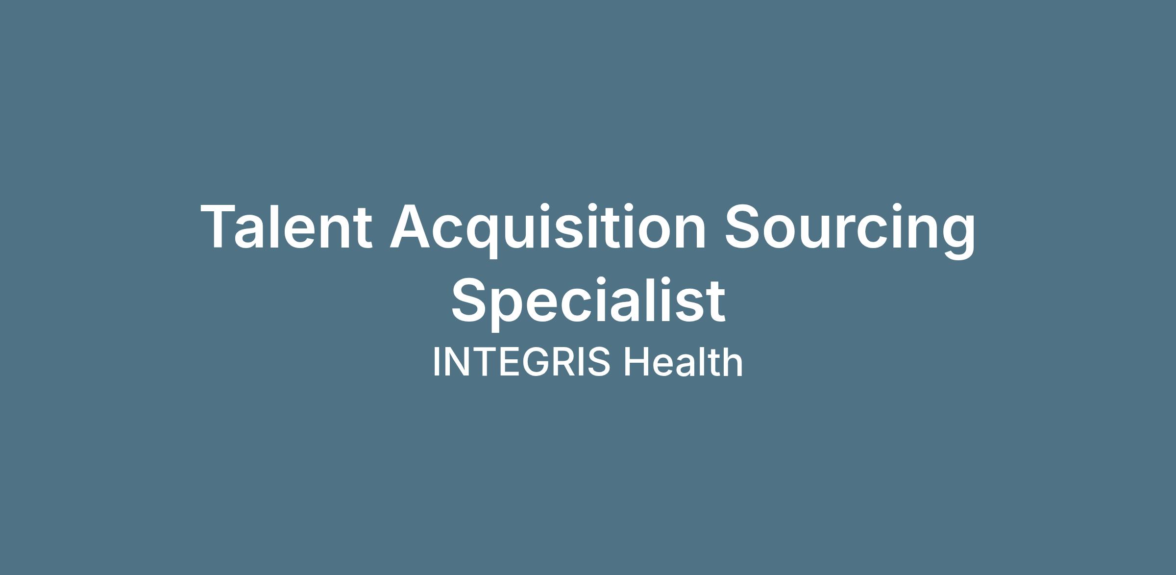 DescriptionINTEGRIS Health, Oklahoma’s largest not-for-profit health system, has a great opportunity for a Talent Acquisition Sourcing Specialist in Oklahoma City, OK. In this position, you’ll be a part of our Physician & Provider Recruitment team providing exceptional work supporting the INTEGRIS Health caregivers and the community at large. If our mission of partnering with people to live healthier lives speaks to you, apply today and learn more about our recently enhanced benefits package for all eligible caregivers such as, front loaded PTO, 100% INTEGRIS Health paid short term disability, increased retirement match, and paid family leave. We invite you to join us as we strive to be The Most Trusted Partner for Health.